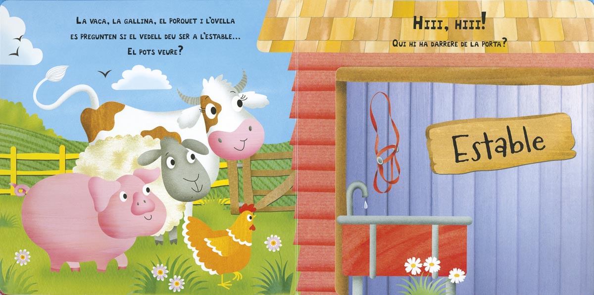 Uneix-te a la mare vaca i ajuda-la a trobar el seu petit vedell a la masia. Amb entretingudes solapes i desplegables, aquest és el llibre ideal per als petits amants dels animals.