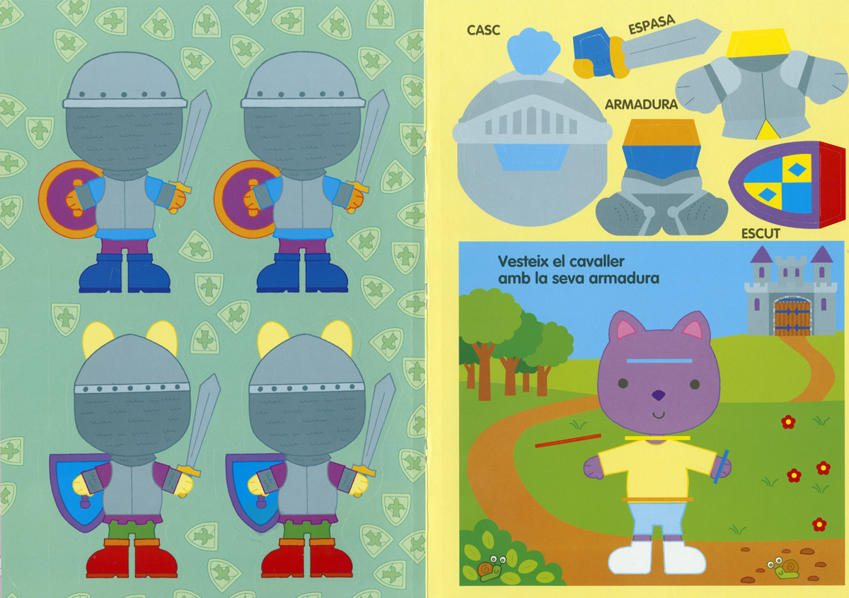 Un gran llibre amb figures extraïbles i un escenari per a muntar i jugar. Descobreix com es viu en aquest meravellós castell de conte, i vesteix el cavaller amb la seva armadura.