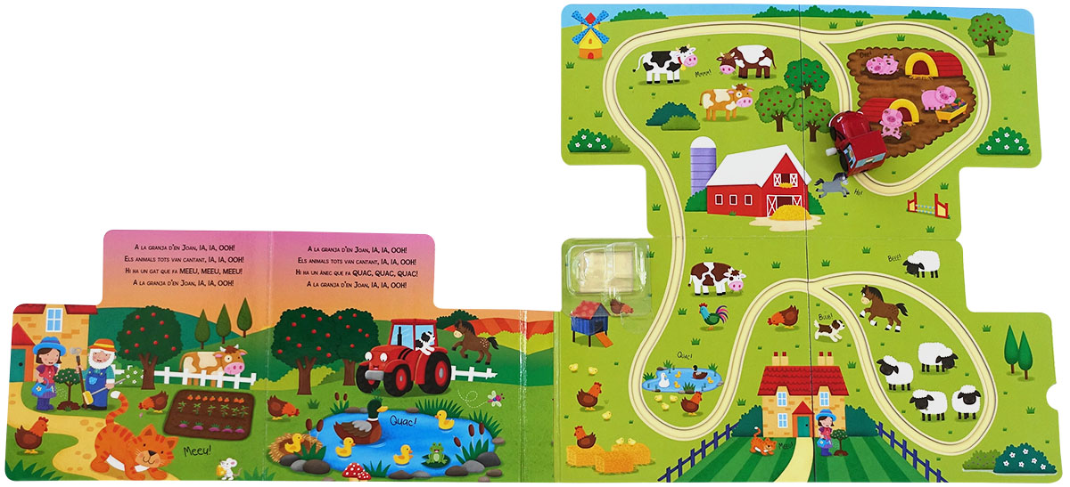 Gaudeix cantant la can莽贸 "A la granja d'en Joan" amb aquest llibre, mentre jugues amb el tractor pel circuit.