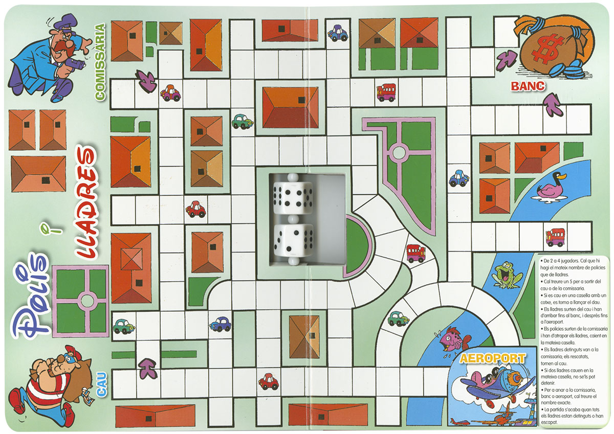 Diverteix-te amb aquest llibre-tauler que conté cinc entretinguts jocs, juntament amb les fitxes i els daus que es necessiten per a començar a jugar... quan vulguis!