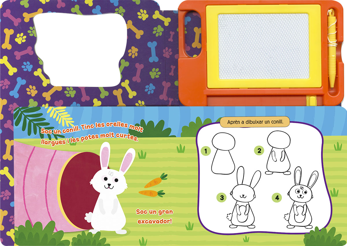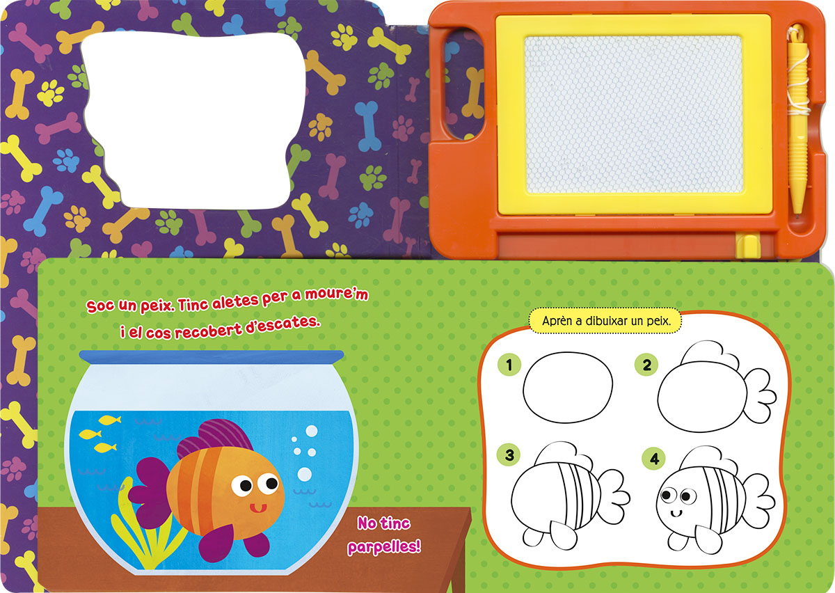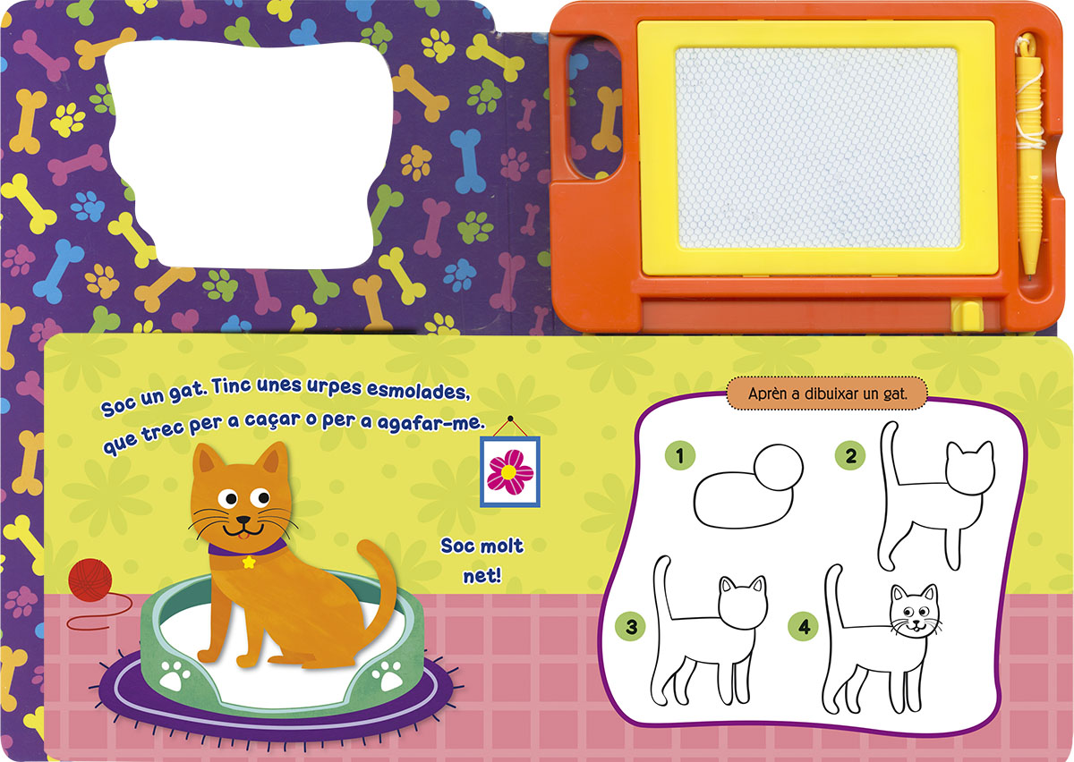 Quines s贸n les teves mascotes preferides? Amb aquest llibre de cartr贸 podr脿s aprendre a dibuixar-les, ja que inclou indicacions i una pissarra on podr脿s practicar tantes vegades com vulguis. Aprendr脿s a dibuixar deu animals!