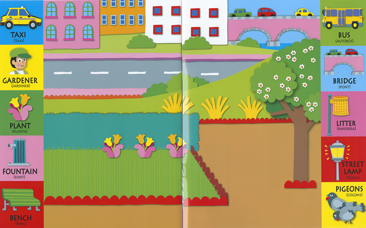 Aquest llibre està pensat perquè els més petits es familiaritzin i aprenguin les seves primeres paraules en anglès d'una forma divertida, amb adhesius reutilitzables que podran enganxar una vegada i una altra en els diferents escenaris de la ciutat.