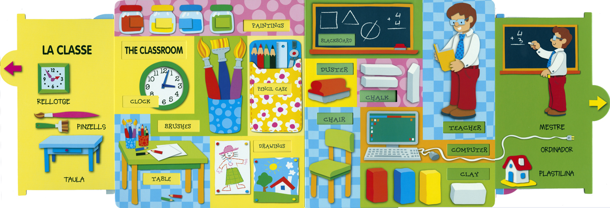 Una col·lecció de llibres interactius perquè els infants aprenguin anglès d'una forma divertida. Els adults poden llegir amb ells les paraules de cada pàgina en català, estirar la fletxa i veure la traducció en anglès. També poden jugar plegats a memoritzar les paraules i estirar la fletxa per a saber qui l'ha encertat.