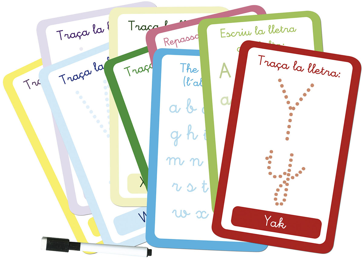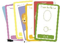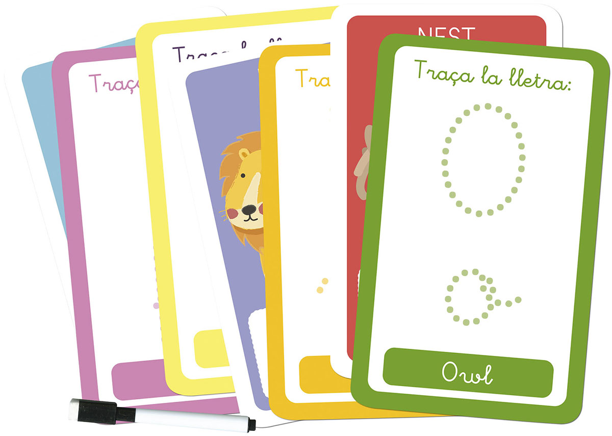 Enquadernació:  Caixa de cartró plastificada i encunyada conté 30 fitxes de cartolina i un retolador esborrable