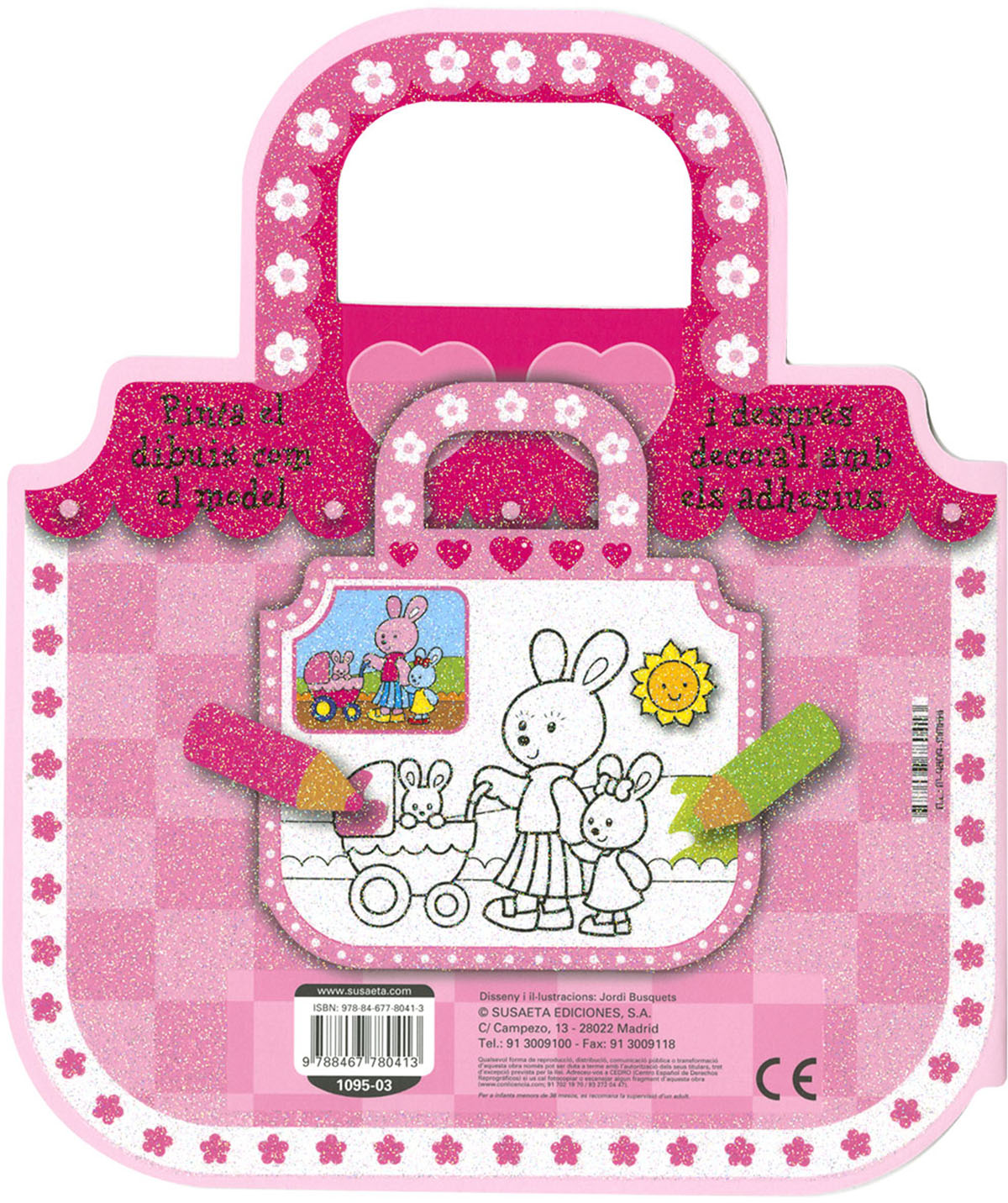 Obre el teu llibre en forma de cistell de mà i omple les pàgines de color; després, decora-les amb els adhesius: en tens un munt per a escollir!