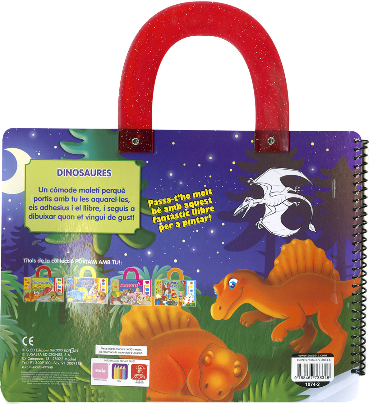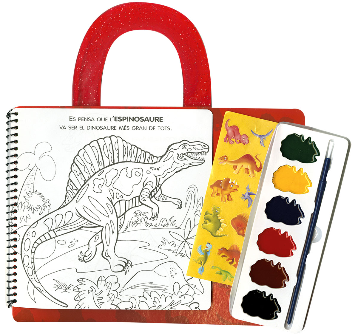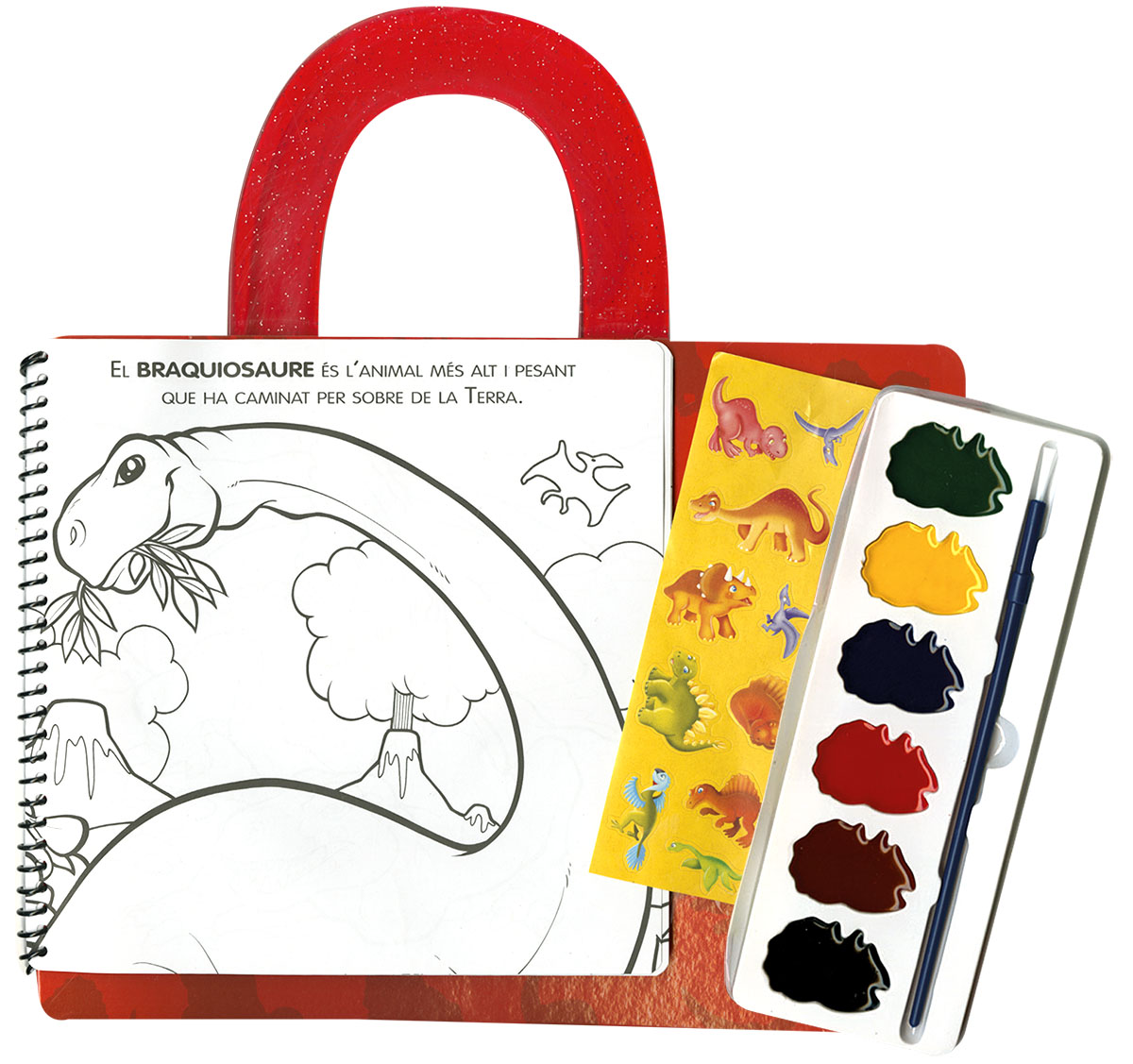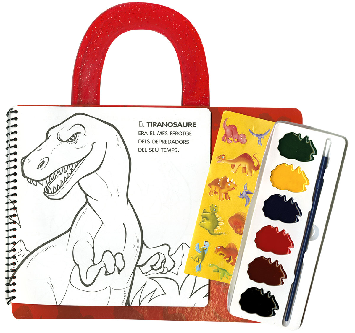 Un còmode maletí perquè portis amb tu les aquarel·les, els adhesius i el llibre, i t'asseguis a dibuixar on et vingui de gust! Passa-ho en gran amb aquest fantàstic llibre d'acolorir!