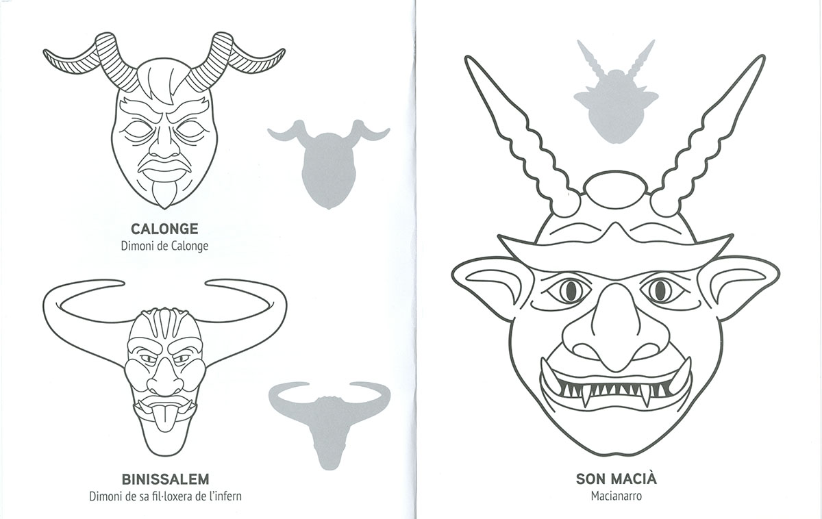 Aquest llibre de màscares està inspirat en uns personatges molt populars de l'illa de Mallorca, els dimonis, que la nit del 16 de gener es passegen pels pobles fent entremaliadures i encomanant l'esperit festiu com a preludi de la celebració de la festivitat de sant Antoni Abat, patró dels animals. Diverteix-te pintant i enganxant les màscares del dimonis més coneguts!