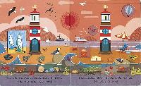 En el transcurs d'un dia la platja es va transformant, canviant amb la llum que tenyeix les coses de colors diferents amb el transcĂłrrer de les hores. Obre aquest llibre i mira per les seves finestres: observa com canvia la platja del matĂ­ a la nit, qui la visita a cada moment del dia, quants animals i vehicles solquen els seus cels.