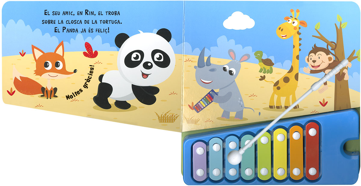 El panda està aprenent a tocar el xilòfon. Vols saber com ho fa? T'agradaria tocar? Doncs amb aquest llibre podràs. Agafa la baqueta i dóna-li ritme a la vida!