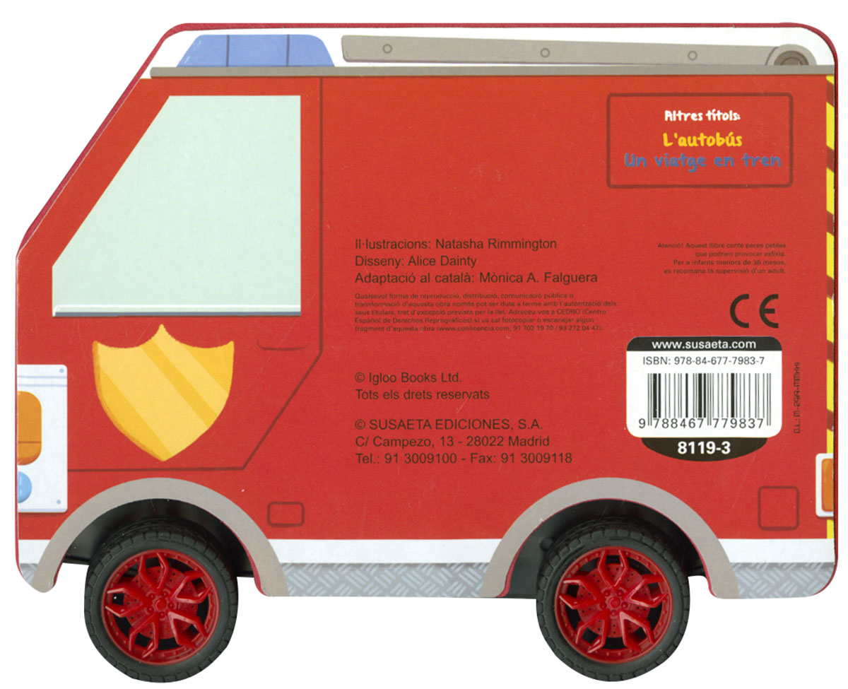 Enquadernació:  Llibre goma escuma encunyat amb impresion en cartró plastificat mat, tancament amb velcro i rodes