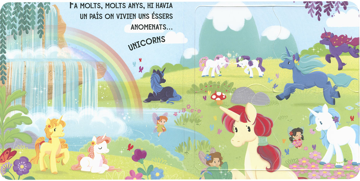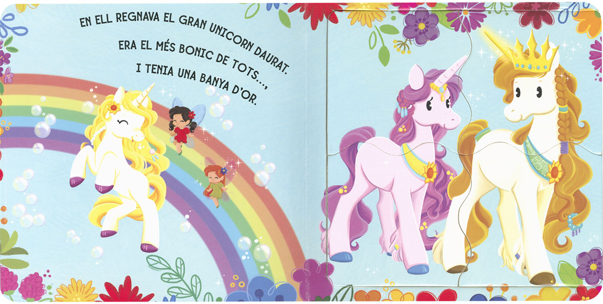 Fa molts anys, els unicorns vivien en un llunyà país on regnava el Gran Unicorn Daurat. Una bonica història perquè els petits lectors gaudeixin dels unicorns i juguin muntant els senzills trencaclosques.
