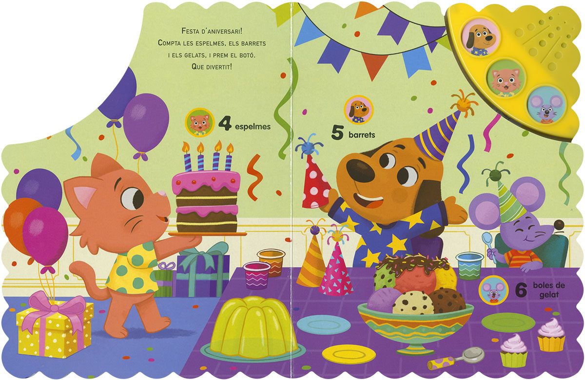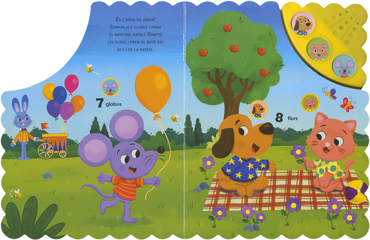Enquadernació:  Llibre de cartró plastificat i encunyat amb mòdul amb 3 polsadors sonors