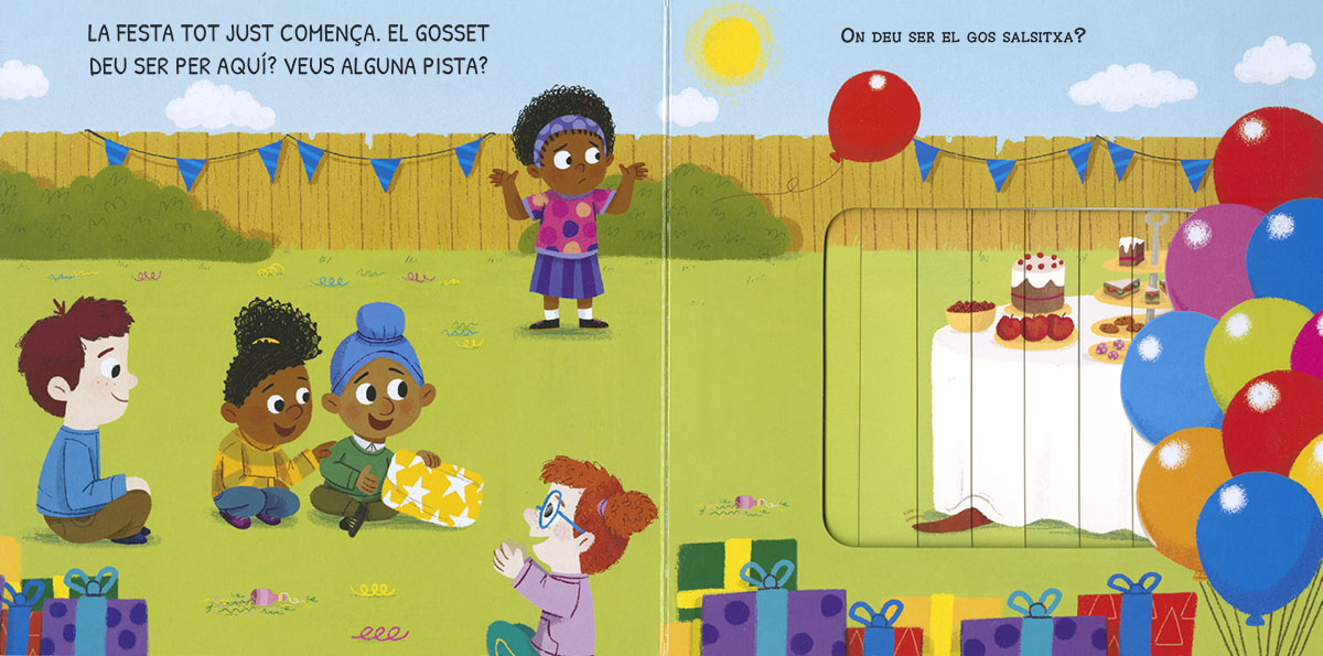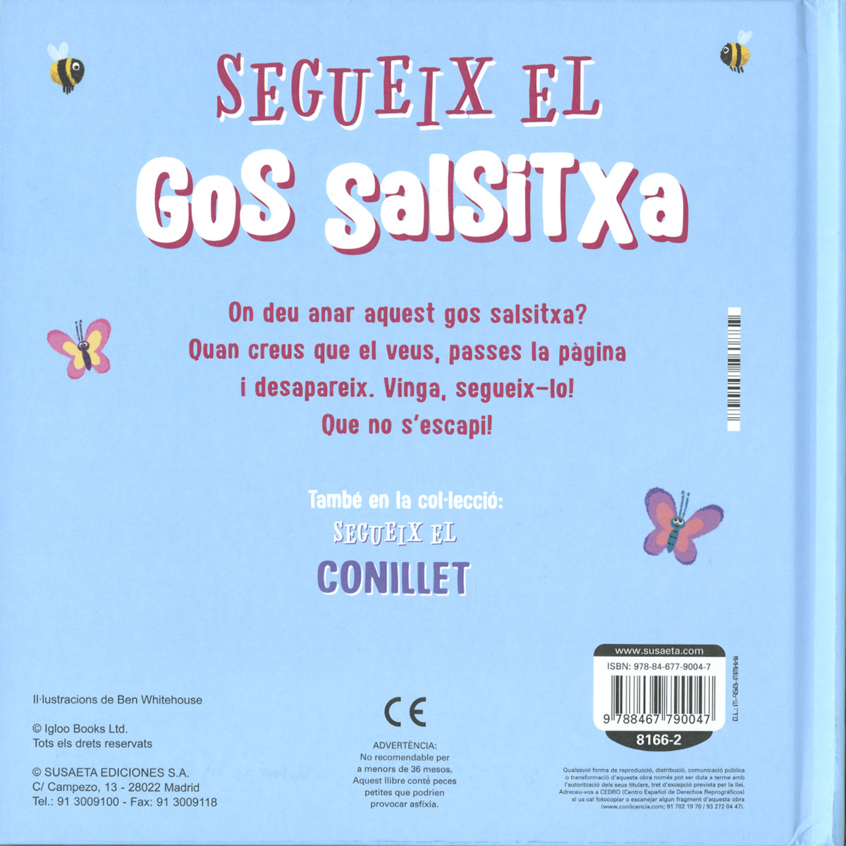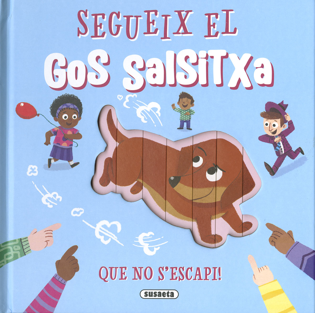 On deu anar aquest gos salsitxa? Corre tan ràpid que no hi ha qui el segueixi... i quan creus que el veus, passes la pàgina i desapareix. Vinga, segueix-lo! Busca el gosset en aquest llibre de cartró on s'amaga en canviar de pàgina... Llegeix i sorprèn-te!