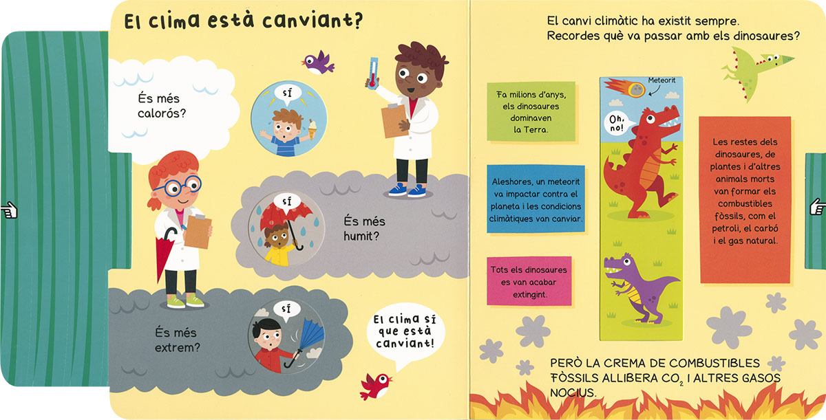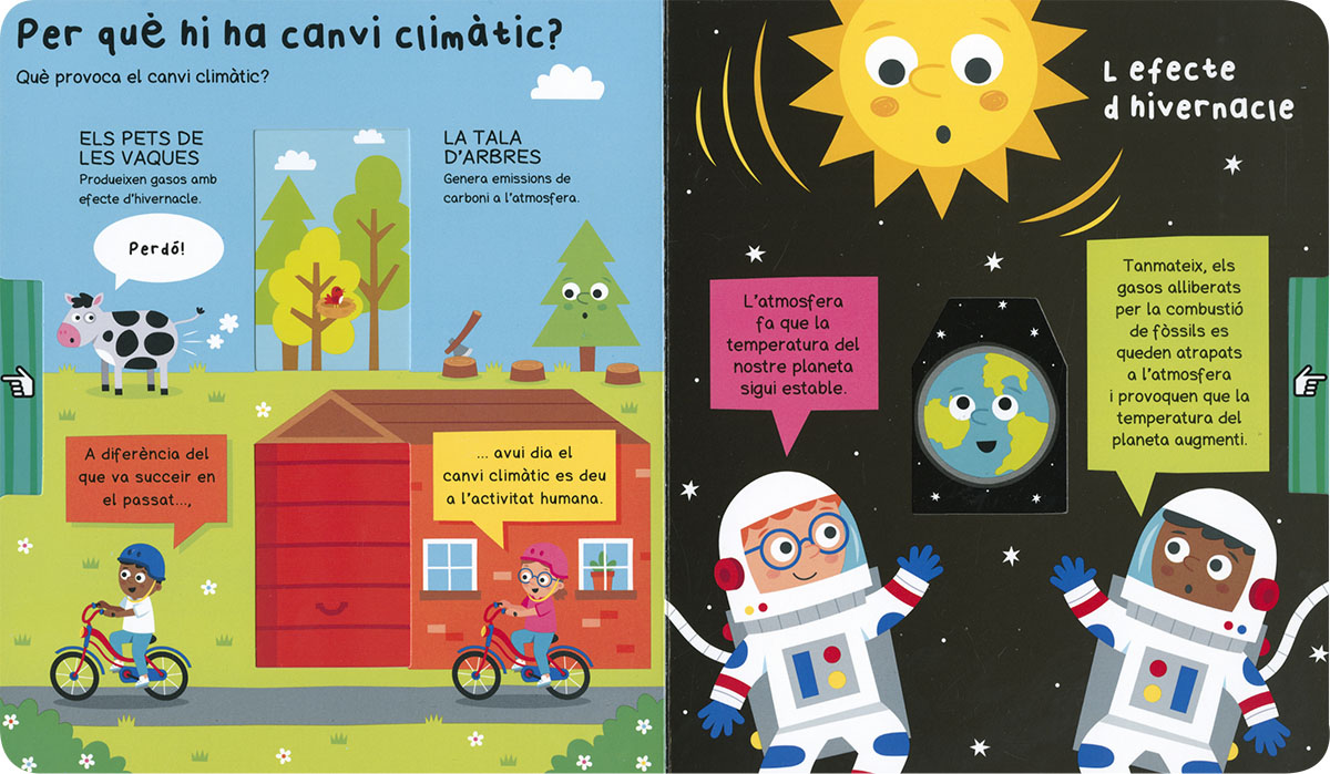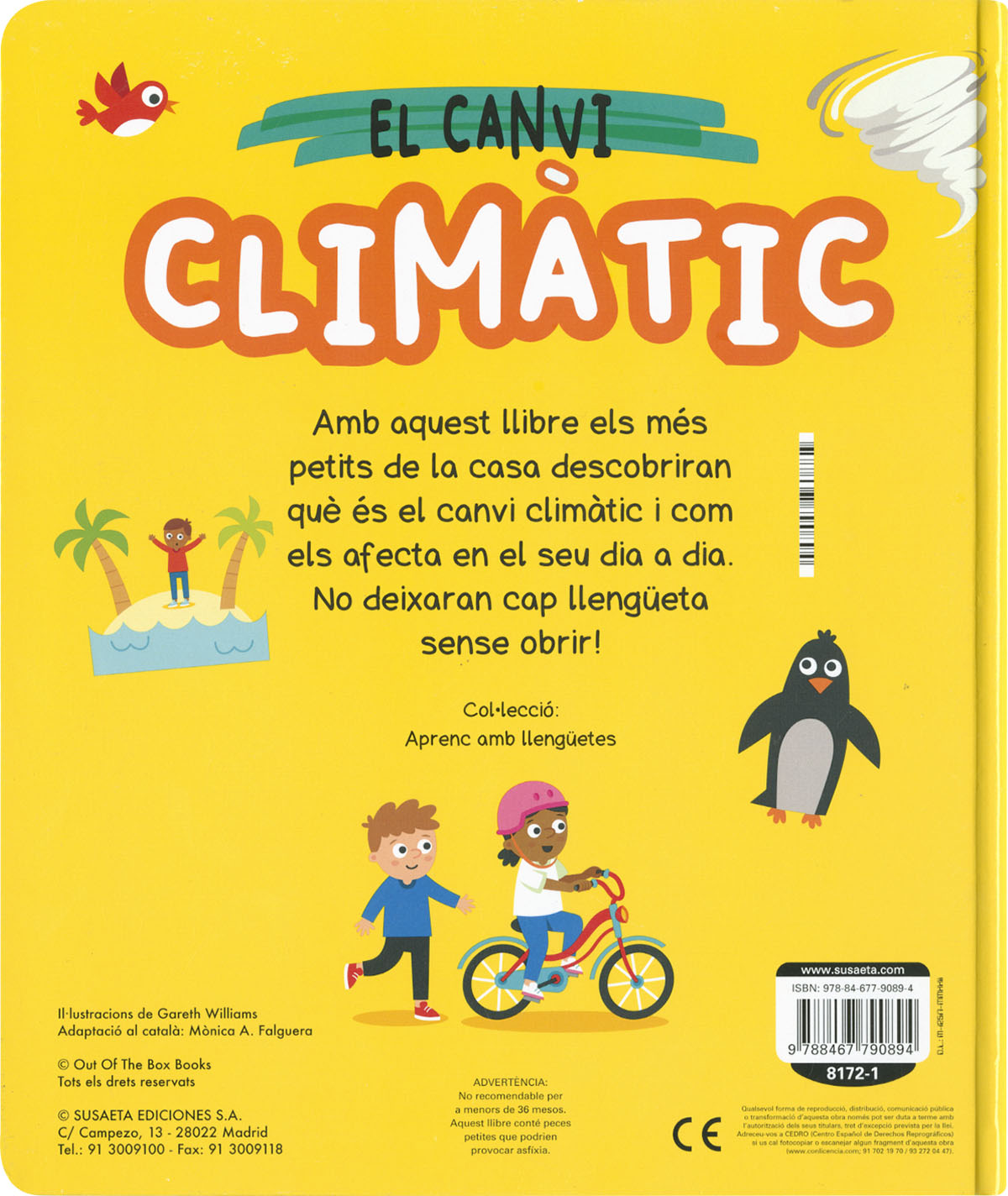 La gent gran parla sobre el canvi climàtic, però ... què és això? Si voleu saber -ho, aquest llibre us ho diu tot. Amb les pestanyes a cada pàgina i il·lustracions a tot color, el caràcter visual d'aquest llibre de cartró us ajudarà a comprendre com us afecta en el vostre dia a dia i com podeu aportar el vostre gra de sorra en la lluita contra el canvi climàtic.