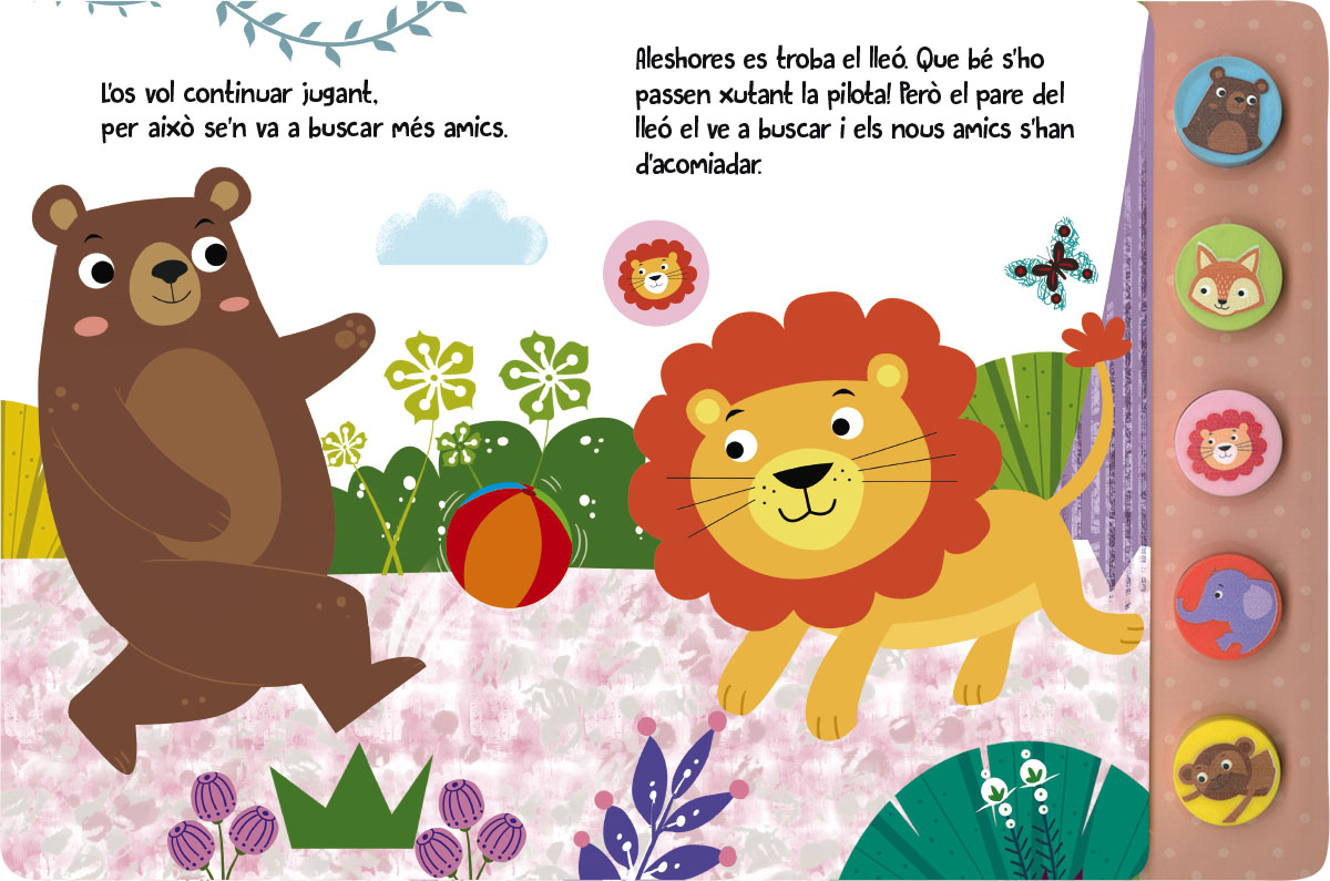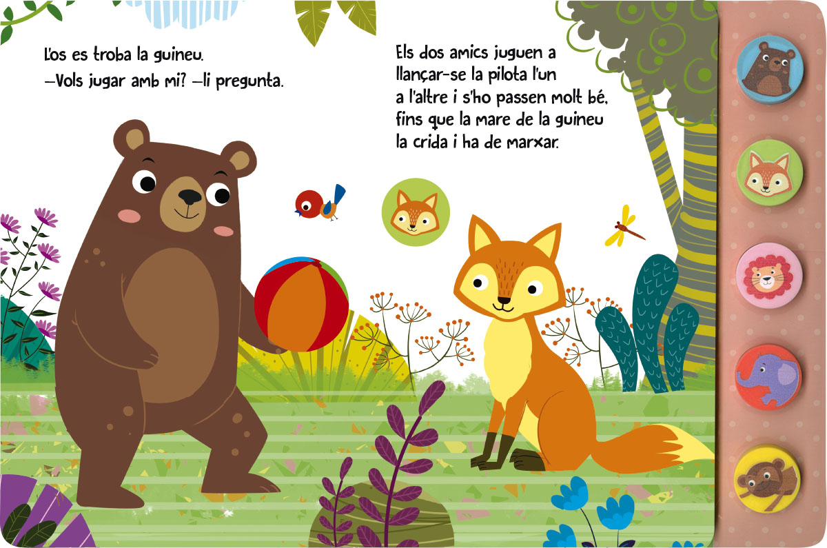 Escolteu els sons dels animals d'aquest llibre prement els botons de silicona. Tens cinc sons en aquest llibre de cartr贸, que podr脿s descobrir a mesura que llegeixes la hist貌ria d'aquest 贸s simp脿tic.