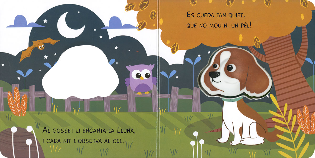 Passa les p脿gines d'aquest preci贸s llibre de cartr贸, prem a la careta del gos i diverteix-te amb el so!