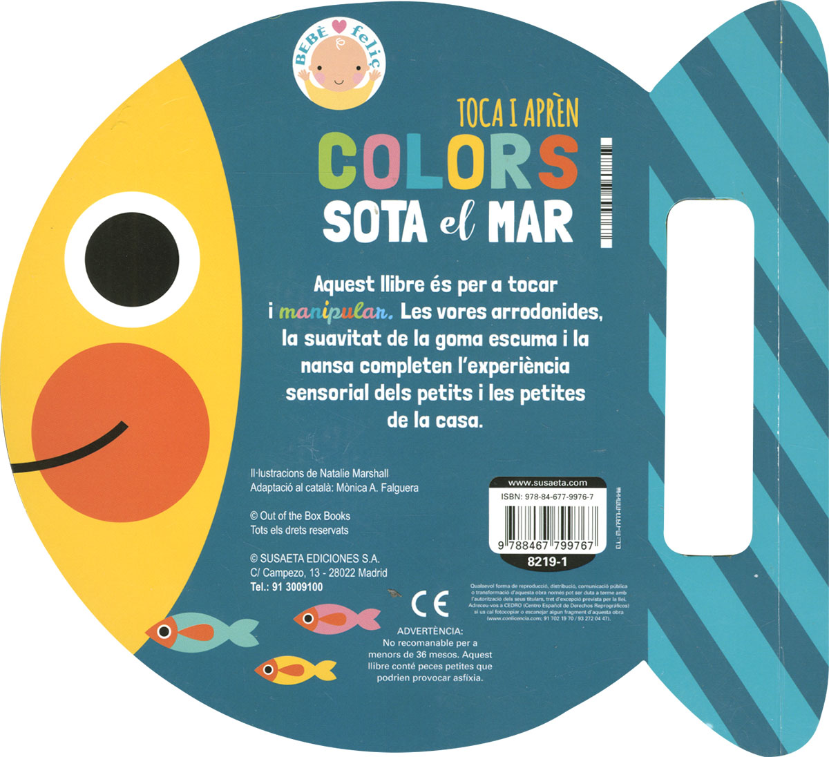 Toca i aprèn els colors amb l'ajuda d'aquest llibre per a pintar i manipular i dels animals del mar. Les vores arrodonides, la suavitat de l'escuma i la nansa completen l'experiència sensorial dels més petits i les més petites de la casa.