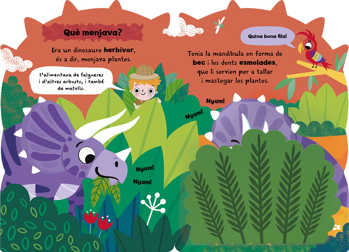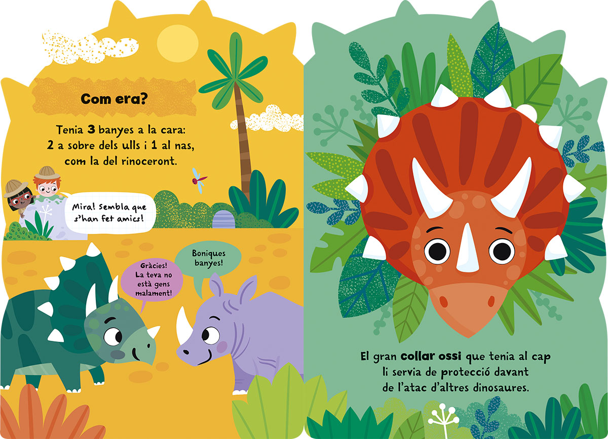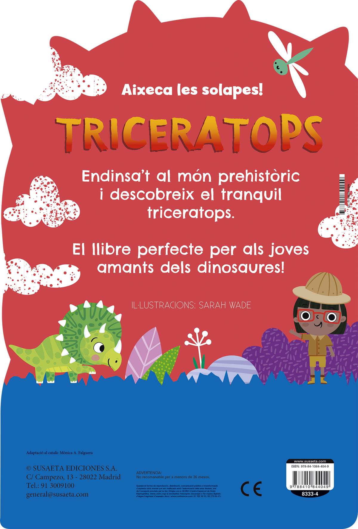 Aixeca les solapes, endinsa't en el m贸n prehist貌ric i coneix l'afable tricer脿tops. Un llibre de cartr贸 gegant perfecte per a joves amants dels dinosaures.