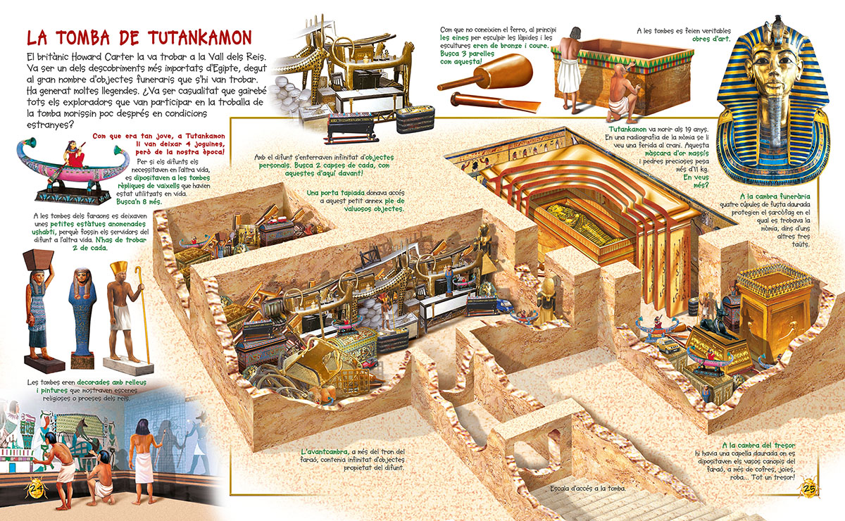 Un títol més d?aquesta col·lecció per a aprendre i gaudir buscant els nombrosos animals, persones i objectes de tot tipus que s?amaguen a les sorprenents il·lustracions. Aquesta vegada es tracta de la vida a l?antic Egipte: com era la seva civilització, el comerç, l?educació, les piràmides, els faraons... Tot un desafiament!