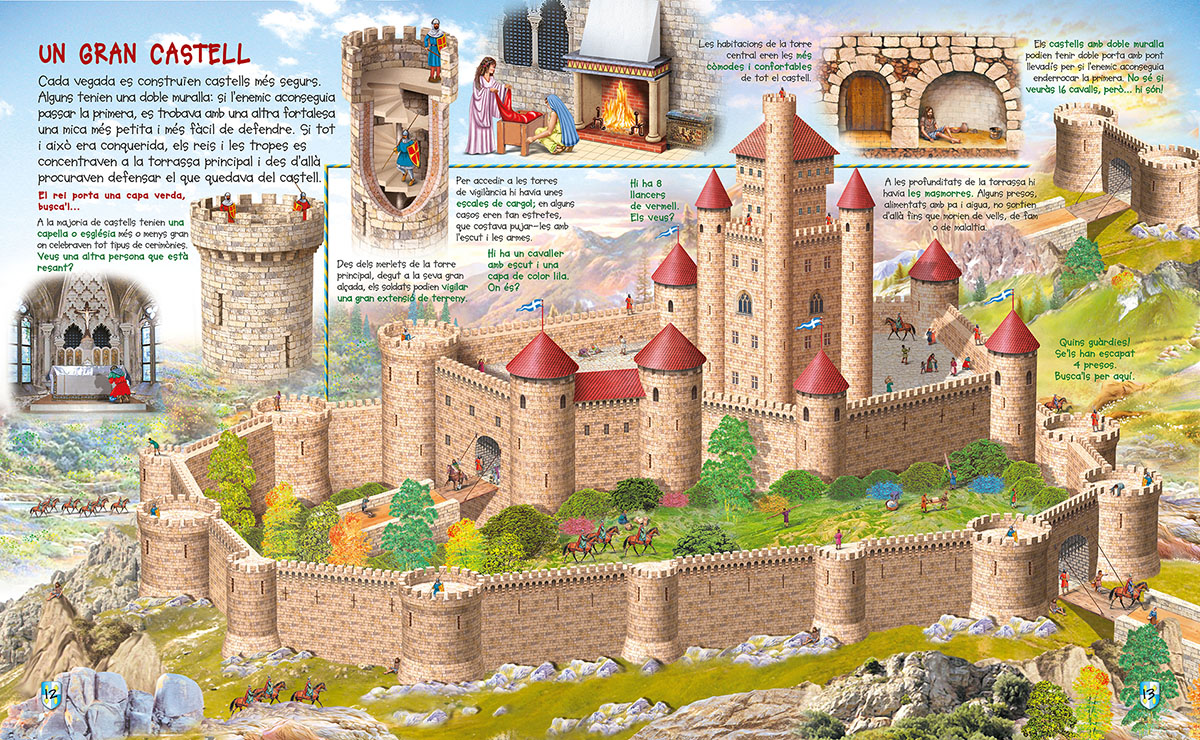 Un títol més d'aquesta col·lecció per a aprendre i gaudir buscant els nombrosos animals, persones i objectes de tot tipus que s'amaguen a les sorprenents il·lustracions. Aquesta vegada descobriràs i aprendràs coses sobre els antics poblats, les primeres fortaleses medievals, com es construïa un castell i com era per dins, i moltes coses més... Tot un desafiament!