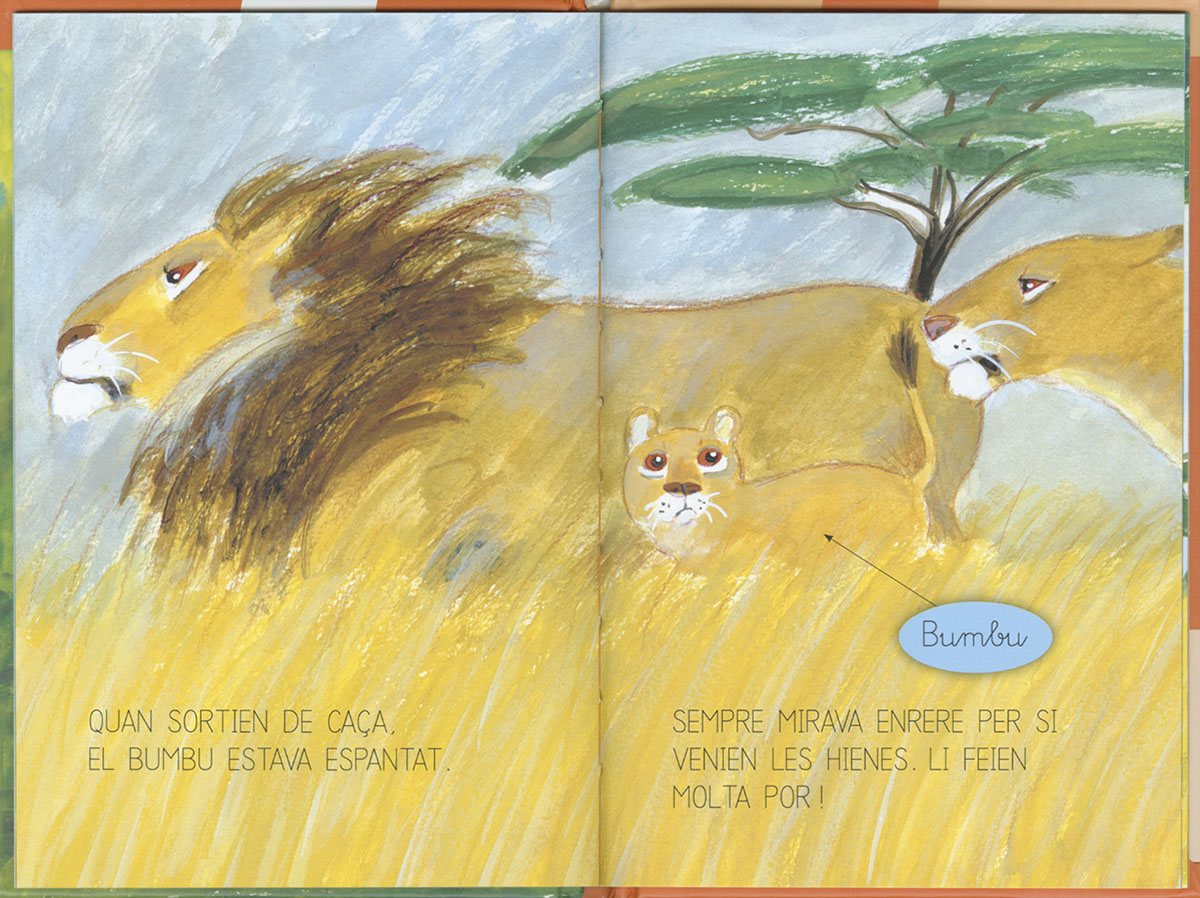 El Bumbu era un cadell de lleó, el fill del cap del grup. Sempre havia estat molt poruc i tot l'espantava: una abella, una girafa, un elefant, la foscor de la nit, una tempesta... El Bumbu va haver d'aprendre per si sol a vèncer aquestes pors, i aleshores va descobrir que no és valent qui no té pors, sinó qui en té i aconsegueix vèncer-les.