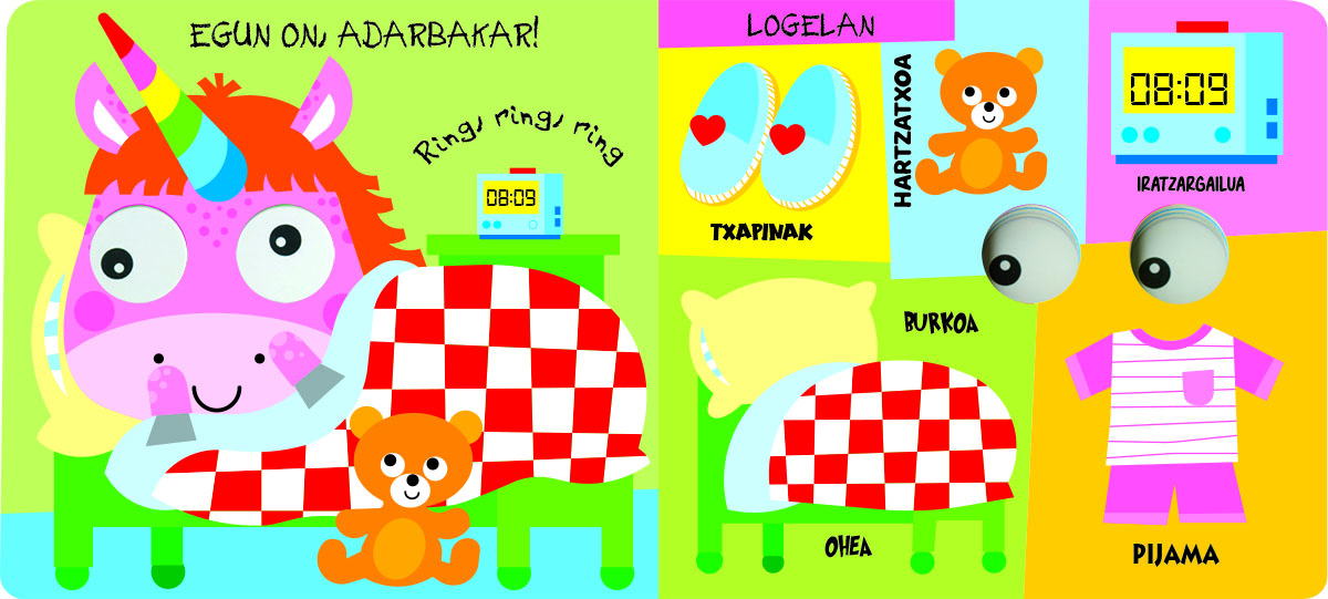 Liburu polit honek begi mugikorrak ditu, adarbakarrak ezagutu eta hitz berri asko ikas ditzazun.