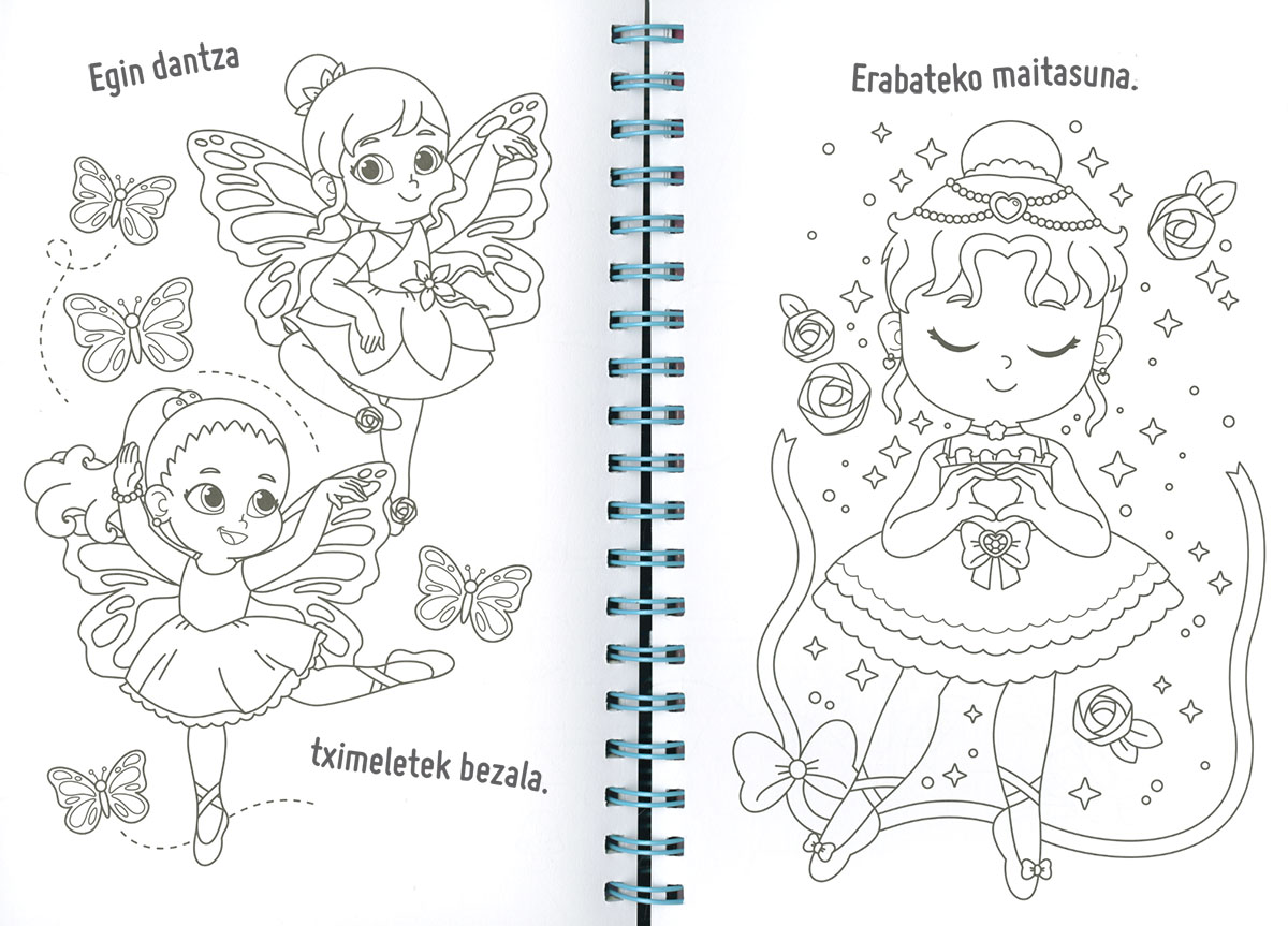 Azala:  Wire-o, plastificado en brillo con estampación en plata. Con láminas de cartulina y material extra.