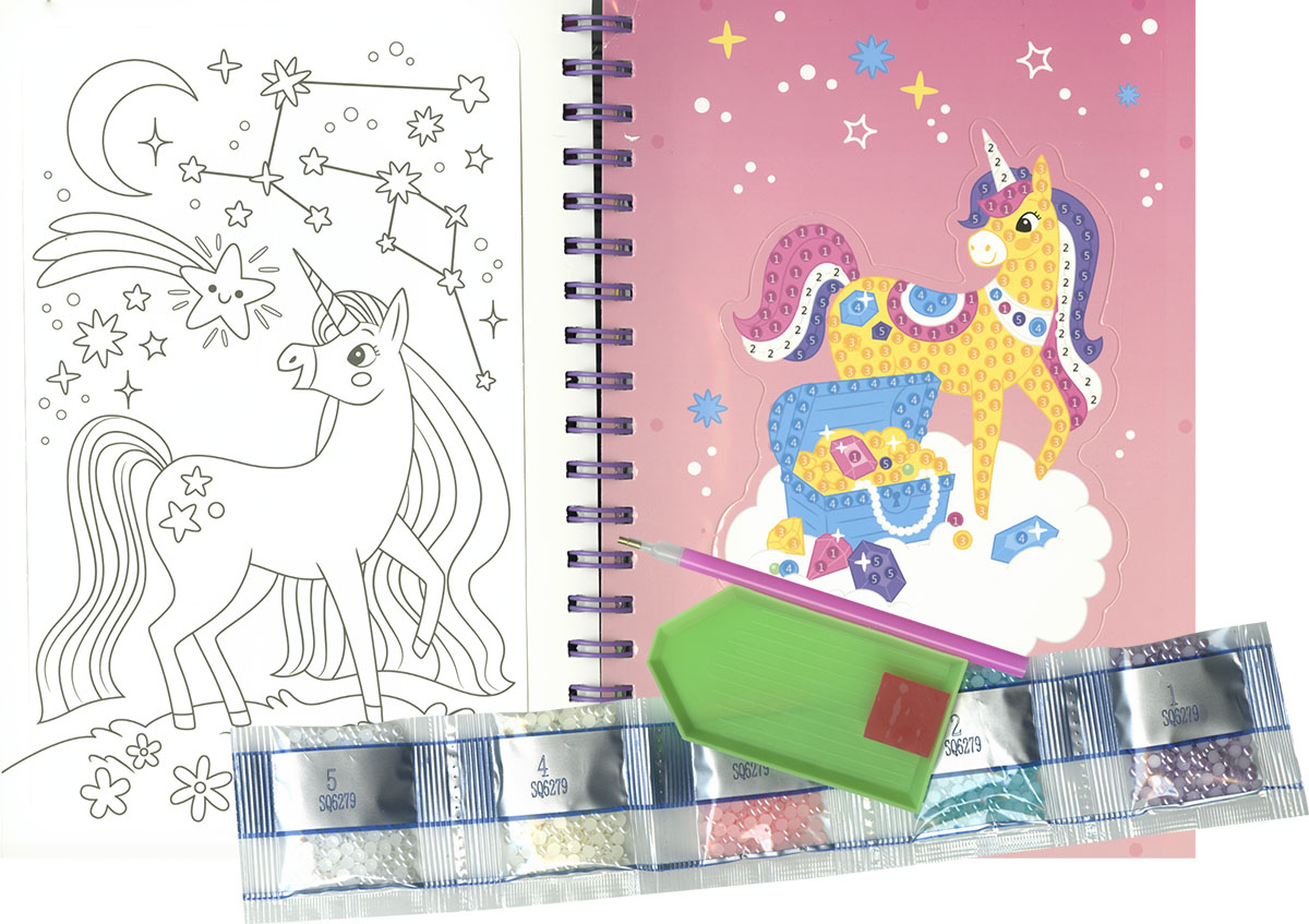 Sortu unikornio magikoen orri bikainak kit oso honekin. Aukeratu 1.500 koloretako kristalen artean eta sortu diseinu liluragarriak. Just zuritu eta itsatsi. Oso sinplea!