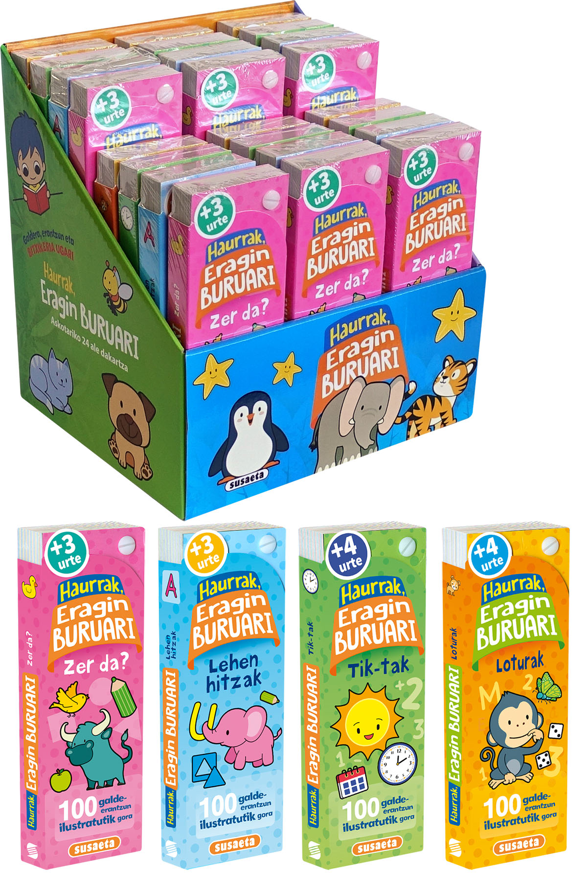 100 galde-erantzun ilustratutik gora, haurrek koloreak, formak, soinuak eta beste gauza asko ikas ditzaten jolastu eta dibertitu bitartean.