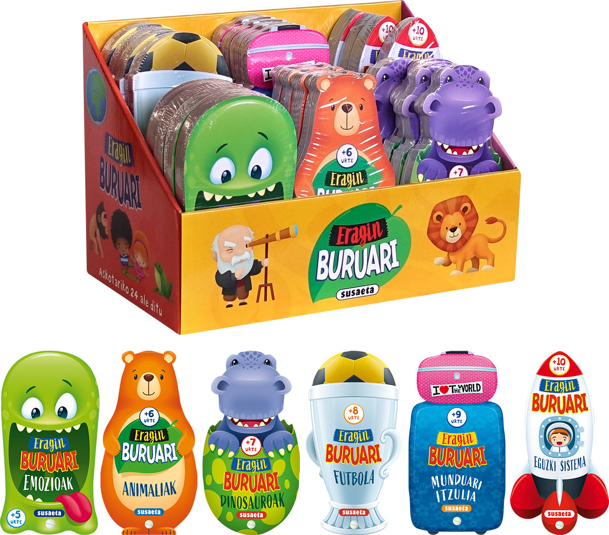 Eragin buruari. Askotariko 24 ale ditu.