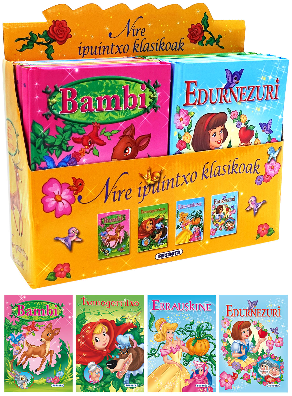 Bilduma polit honek haurren ipuin klasiko gogokoenak biltzen ditu: Bambi, Txanogorritxo, Errauskine eta Edurnezuri. Liburuek oso formatu praktikoa, irudi ederrak eta letra larriz idatzitako testuak dituzte, irakurle txikien gozamenerako. Kutxatilak 4 ipuin ezberdin eta haietako bakoitzaren 6 ale dakartza; 24 liburu, guztira.