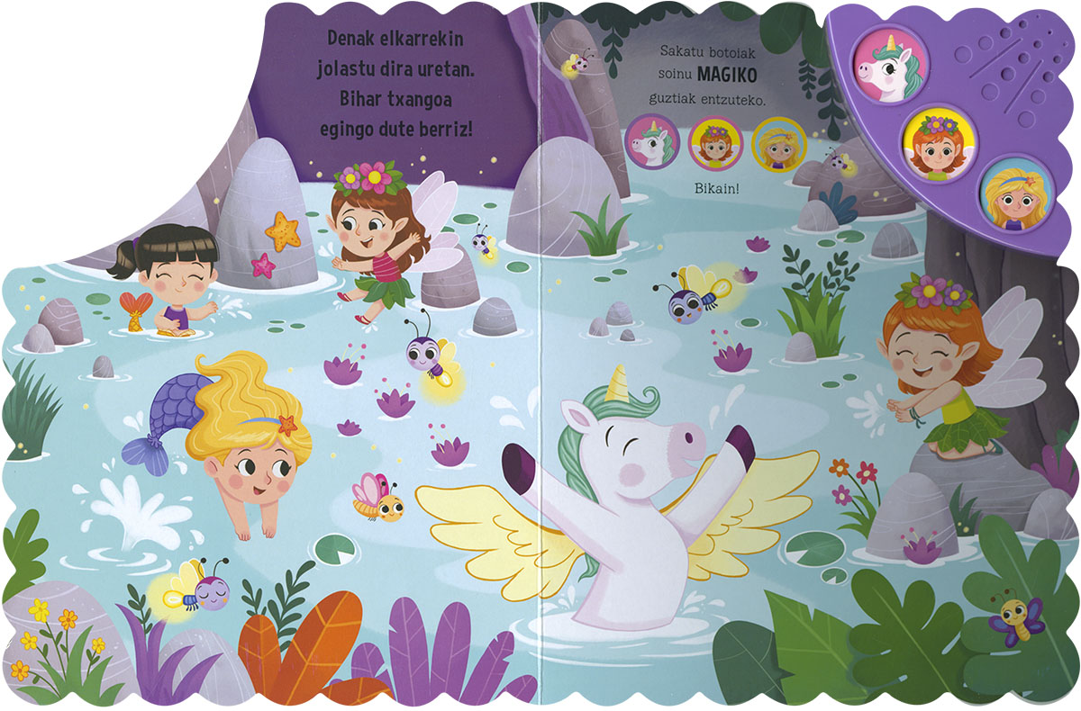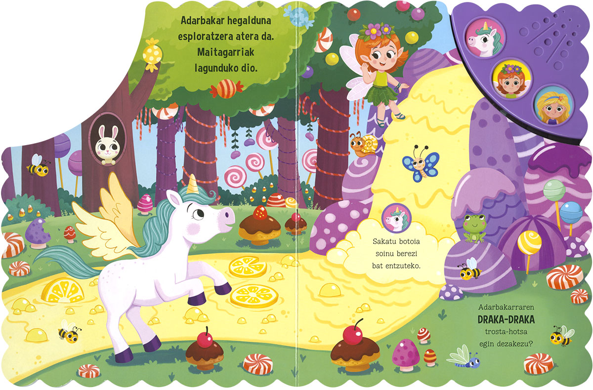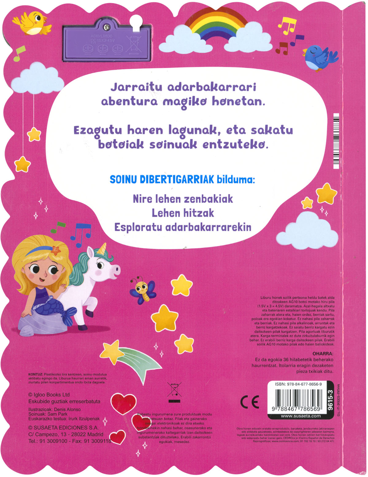 Azala:  Kartoizko laminatu eta troquelatu distiratsua duen liburua, 3 soinu-botoi dituen modulua