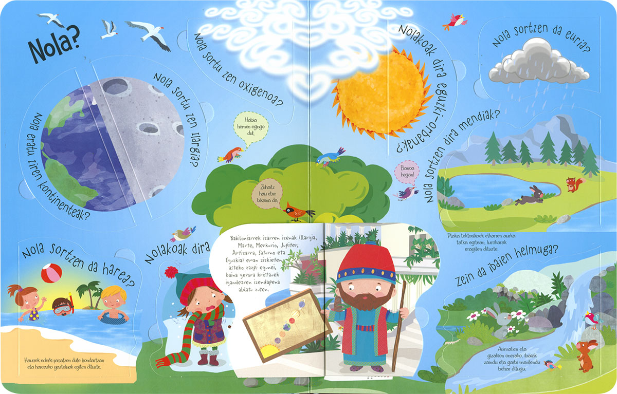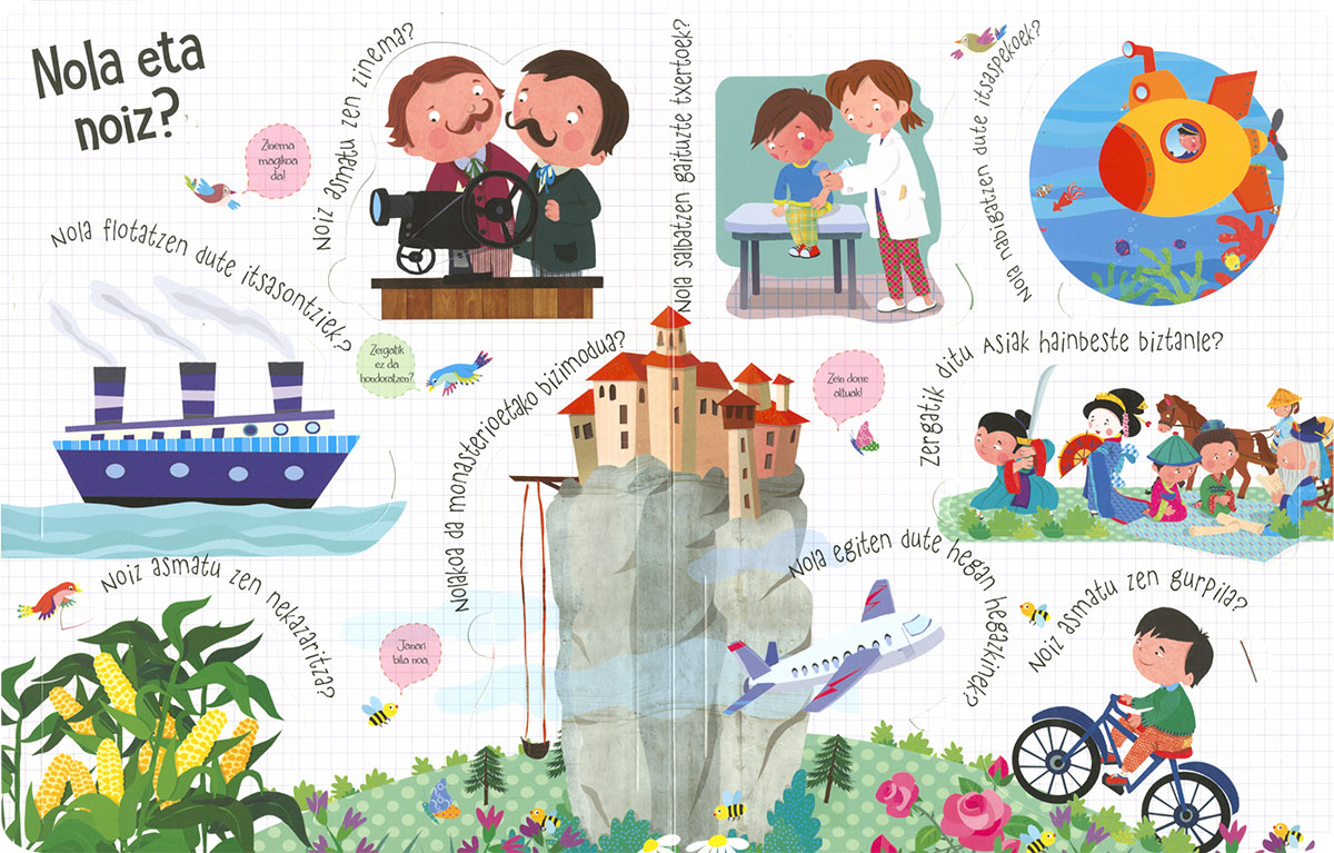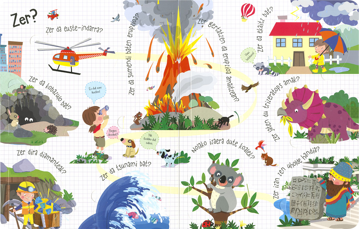 Liburu honen hegalak zabalduz gero, inoiz zeure buruari egingo zenizkion zure inguruko munduari buruzko galdera askoren erantzunak topatuko dituzu. Harritu zaitez eta ikasi nola sortzen den euria, zer izaera duten koalek, noiz asmatu zen zinema eta askoz kontu gehiago.