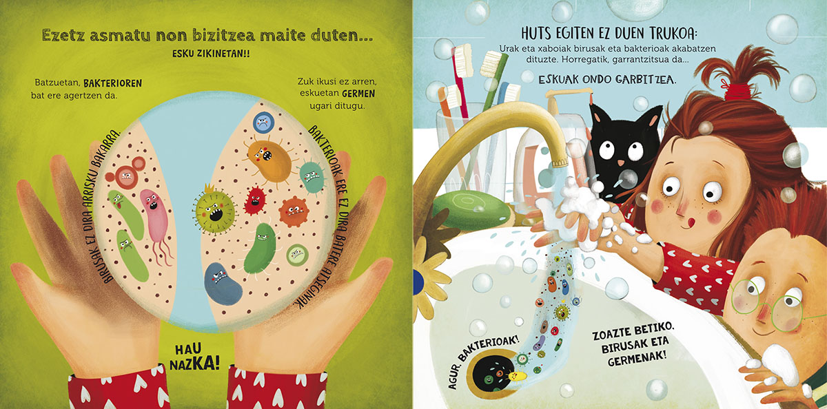 Liburu honetan, haurrei koronabirusak eragindako egungo egoera azaltzen zaie. Oso testu irakurterraza da, eta ilustrazio ederrak ditu. Era horretan, haurrek ulertuko dute denok batera aritzen bagara eta elkarri laguntzen badiogu, birusari aurre egin ahal diogula.