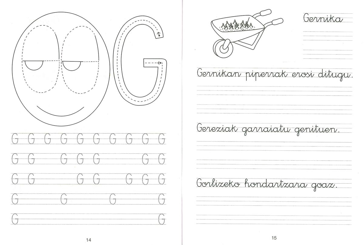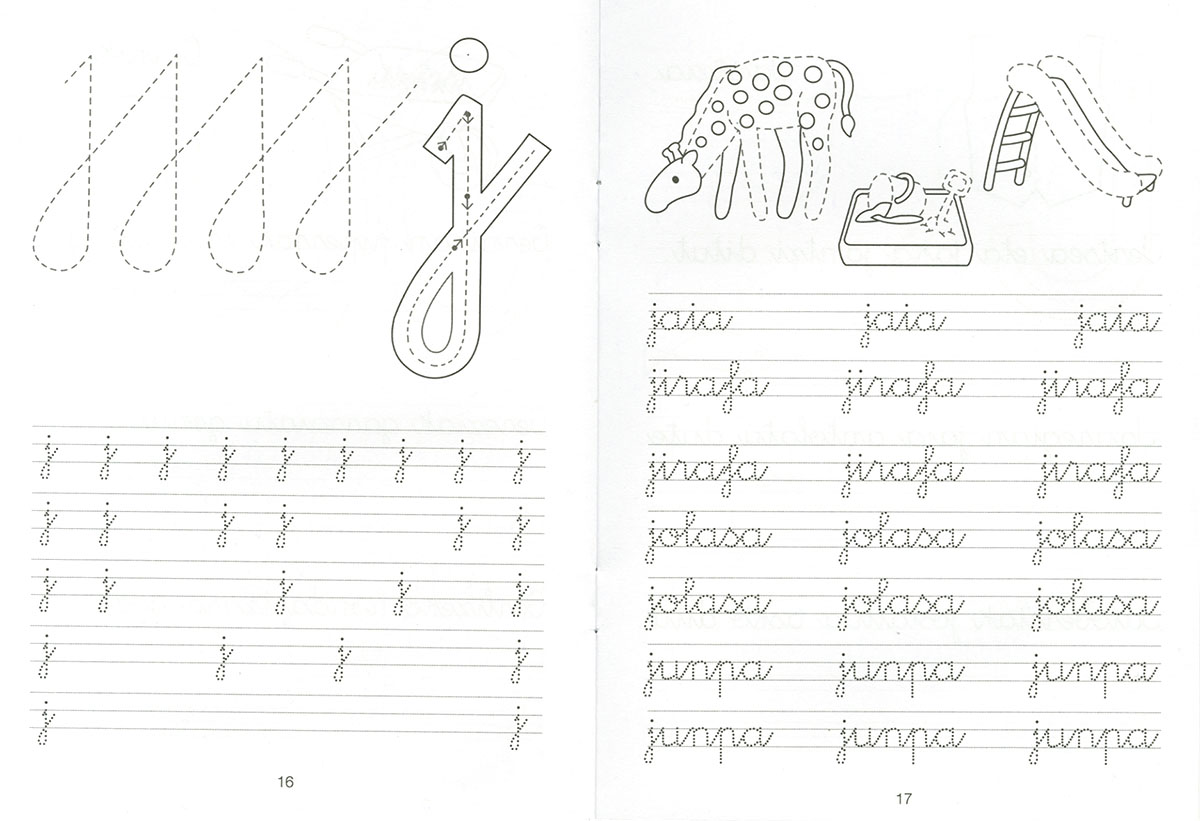 Koaderno honi esker, haurrek alfabetoaren letrak idazten ikasiko dute, eboluzio logiko bati jarraikiz. Marrazki politek eta adibide ugariek idazkera hobetzen lagunduko diete, eta ederki pasatuko dute irakurtzen eta idazten