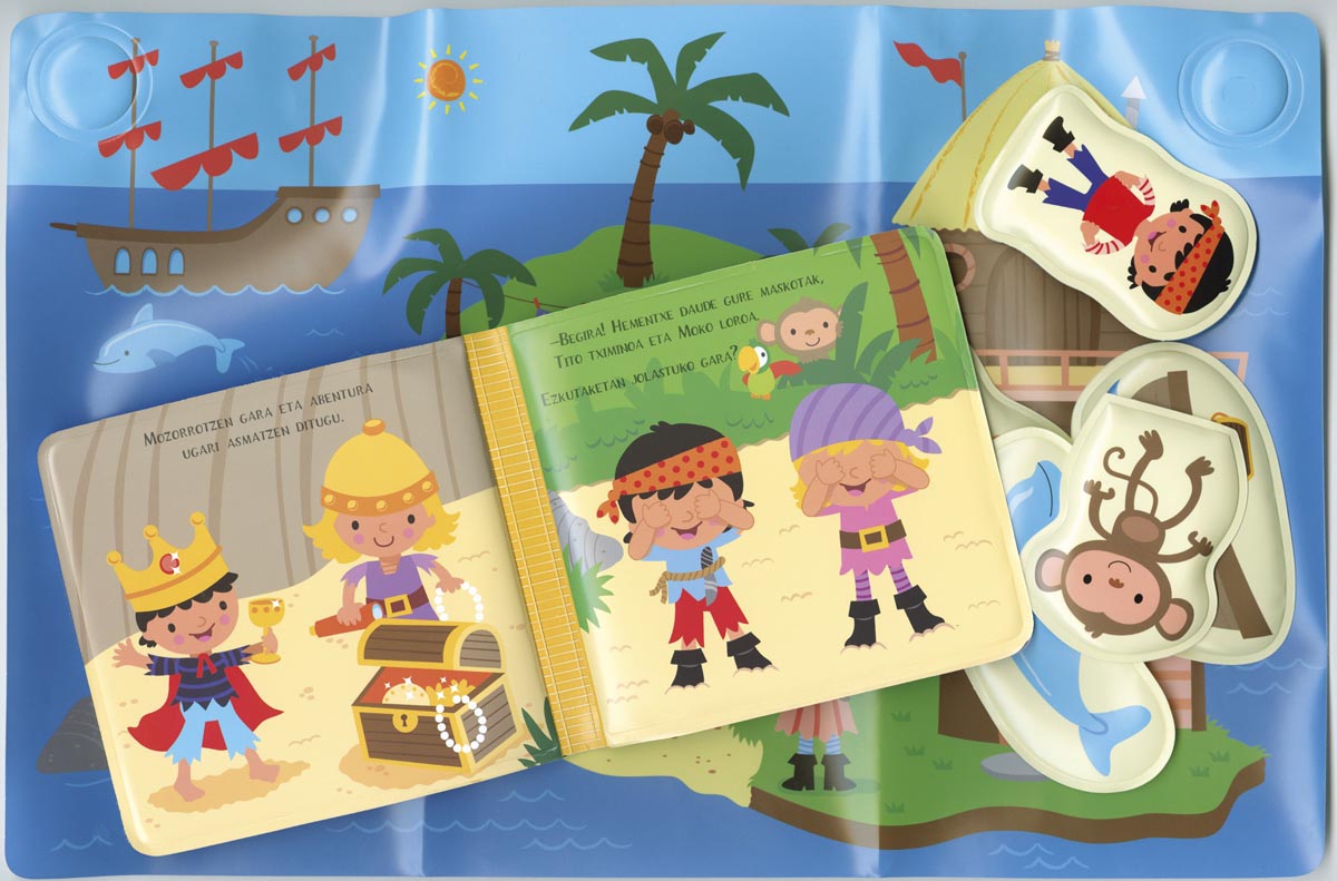 Pirata-agertoki bat eta zenbait figura baino ez dituzu behar bainuaren orduan zure abenturak asmatzeko. bainurako liburu hutsa baino askoz gehiago!