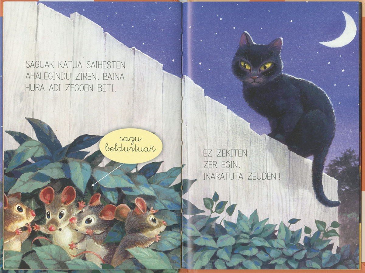 Katua baratzera iritsi zen, eta orduan hasi ziren arazoak saguentzat. Jada ezin zuten gauez jatera irten. Zer egingo zuten? Tino langile nekaezina zen, eta sekula ez zuen amore ematen. Katua erne egon arren, janaria eskuratzeko plan bat pentsatu zuen. Gertatutakoa jakin nahi al duzu? Zabaldu liburua eta ezagutu saguaren eta katuaren istorioa.