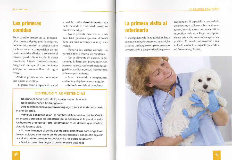 Toda la información que necesitas para conocer, comprender y disfrutar de tu caniche, explicada de manera práctica y clara. Dónde conseguir a tu mascota, criterios a la hora de elegir a tu caniche (macho o hembra; cachorro o perro adulto), educación, alimentación, higiene, salud, reproducción… y muchos consejos prácticos.