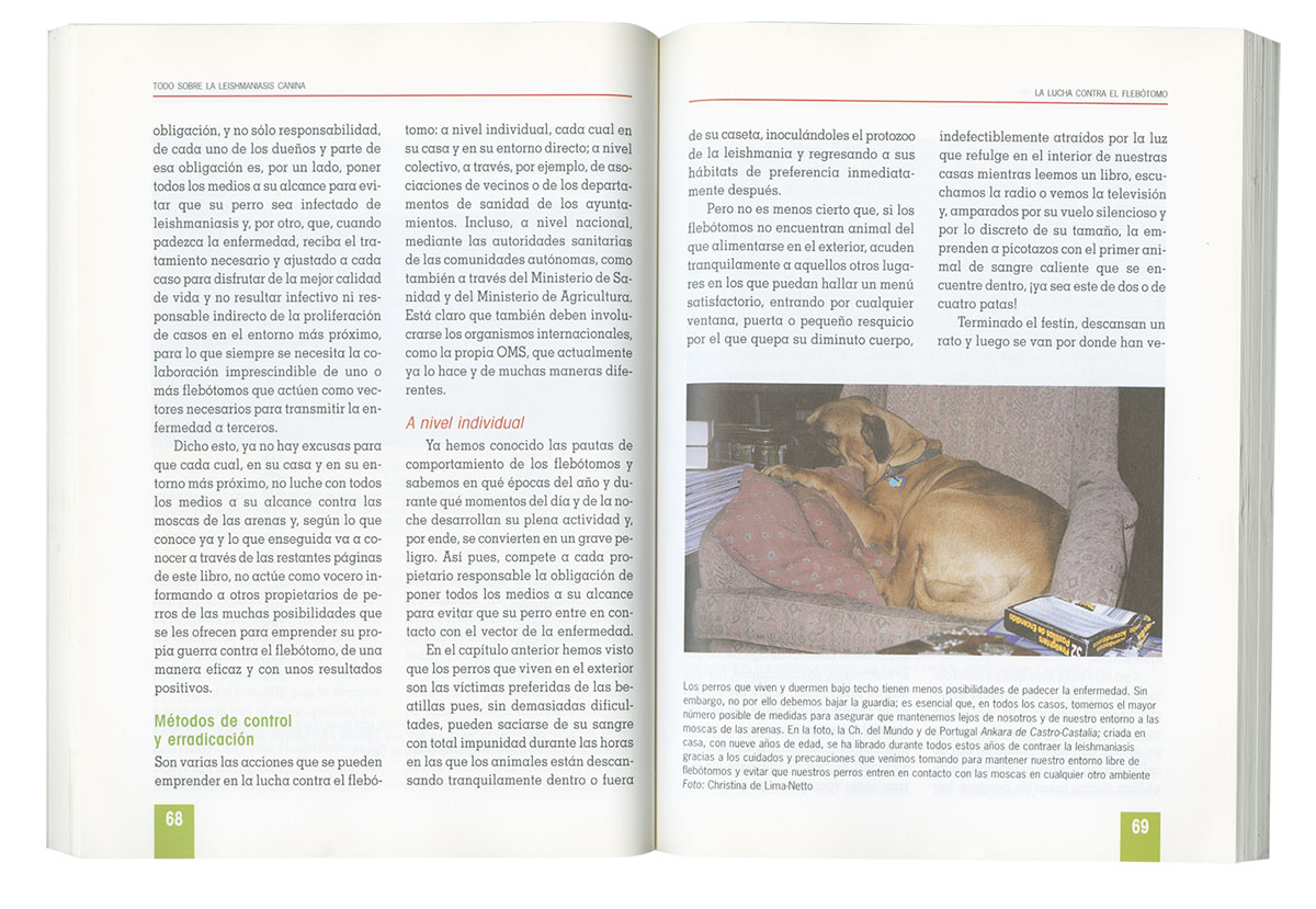 En España, miles de perros contraen anualmente la leishmaniasis canina, que coloquialmente conocemos como "la enfermedad del mosquito", transmitida a través de la picadura diminuta de la mosca de las arenas. Es una enfermedad grave y la vacuna puede no tener siempre los efectos preventivos deseados. Este libro contiene todo lo que hay que saber sobre la enfermedad, métodos de control, prevención y tratamiento.