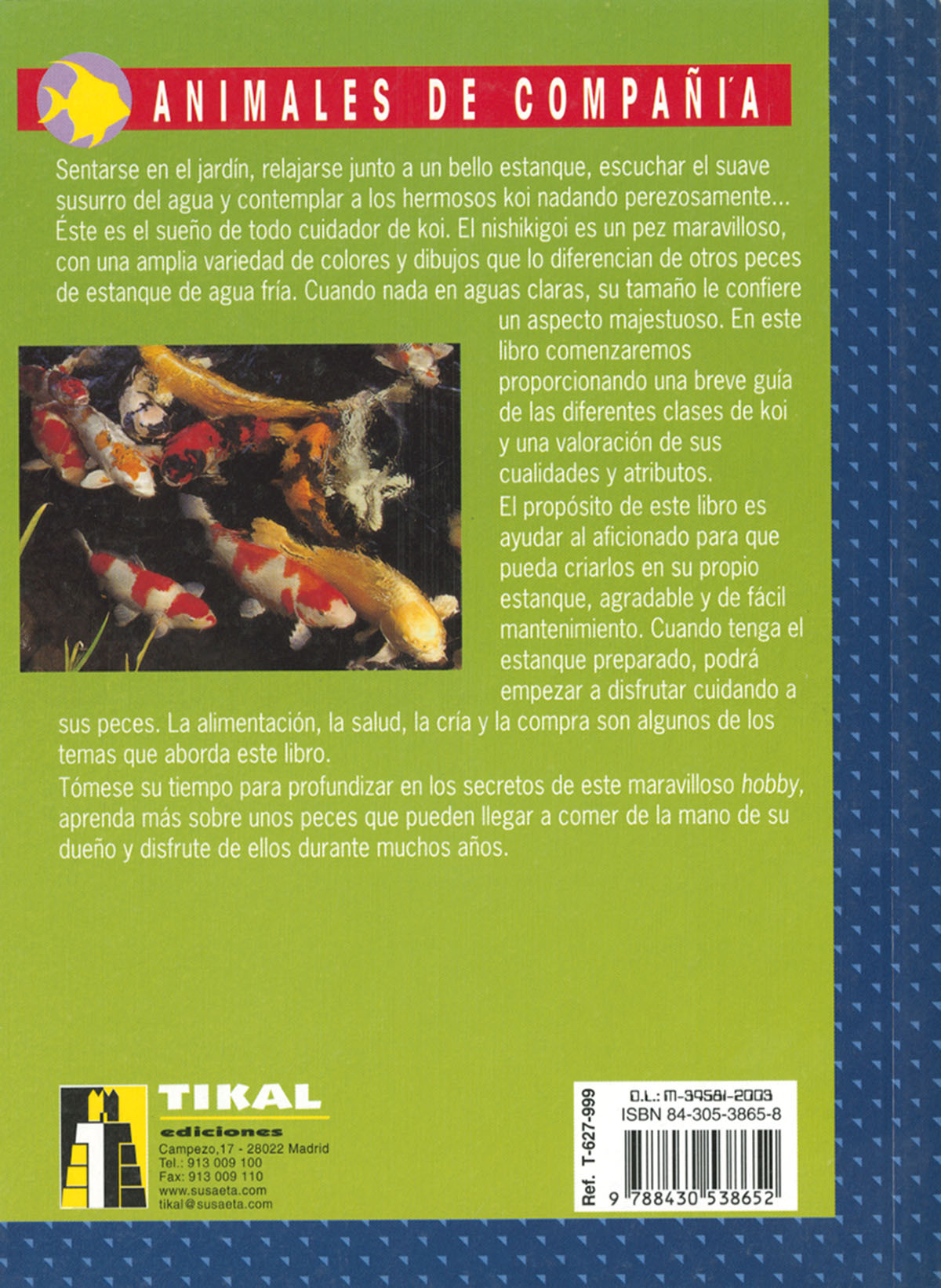 El propósito de este libro es ayudar al aficionado para que pueda criar a estos majestuosos peces en su propio estanque, agradable y de fácil mantenimiento. Cuando tenga el estanque preparado podrá empezar a disfrutar cuidando de sus peces. La alimentación, la salud, la cría y la compra son algunos de los temas que aborda.