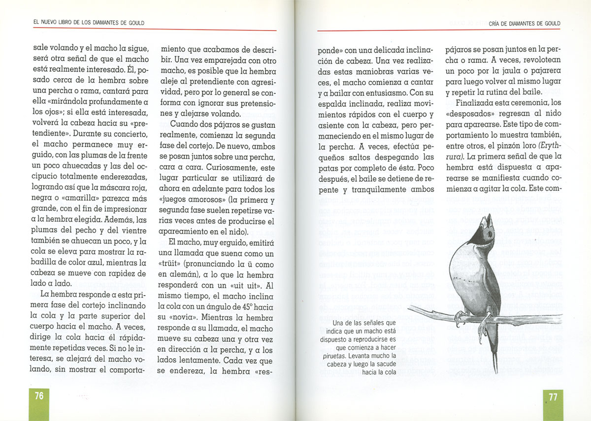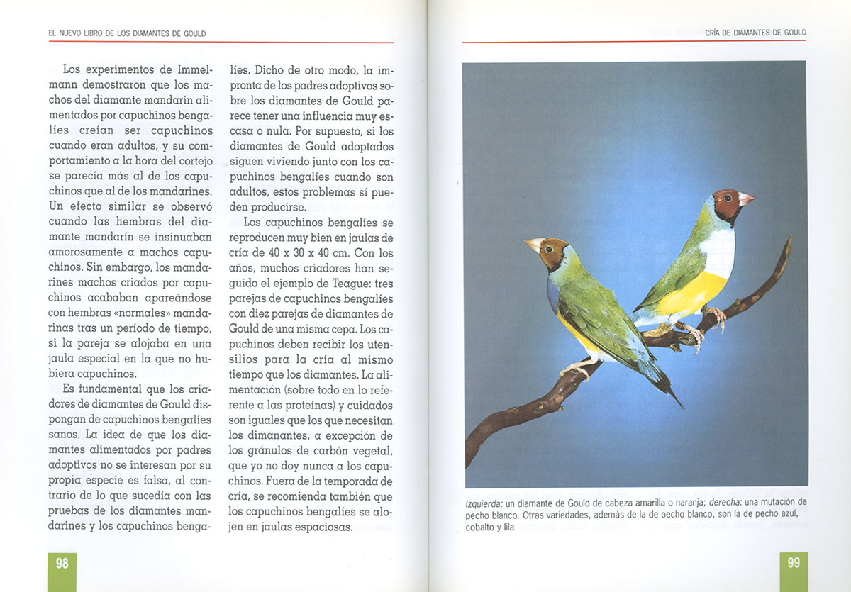 Estos pájaros, con su plumaje multicolor, pueden considerarse los pinzones reales más hermosos, por lo que siempre han despertado un gran interés entre los amantes de las aves. Quien tenga una pareja de diamantes de Gould pronto comprobará lo confiados que son. En el libro se incluye abundante información sobre las enfermedades específicas que pueden contraer, así como sobre sus cuidados, alojamiento, mantenimiento y cría.