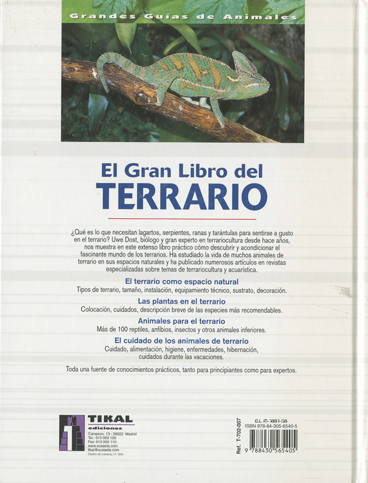 ¿Qué necesitan lagartos, serpientes, ranas y tarántulas para sentirse a gusto en el terrario? Uwe Dost, biólogo y gran experto en terrariocultura, nos muestra en este extenso libro práctico cómo descubrir y acondicionar el terrario: tipos, tamaño, instalación, equipamiento técnico, sustrato, decoración, las plantas más recomendables. Más de 100 reptiles, anfibios, insectos y otros animales inferiores. Cuidado, alimentación, higiene, enfermedades, hibernación, cuidados durante las vacaciones. |
