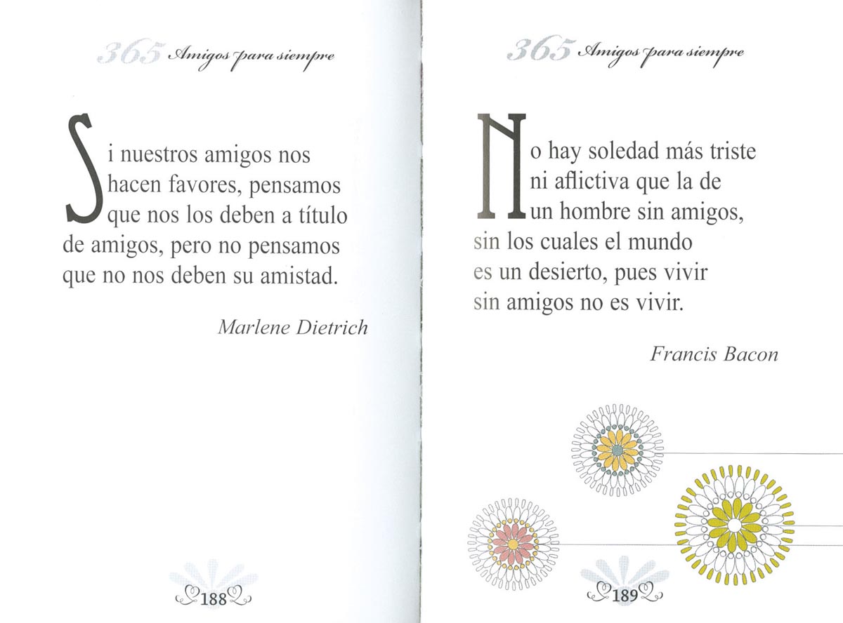 La amistad es el amor a un amigo y ocupa un puesto primordial en nuestro corazón. Este libro recoge frases célebres sobre la amistas... una para cada día del año.