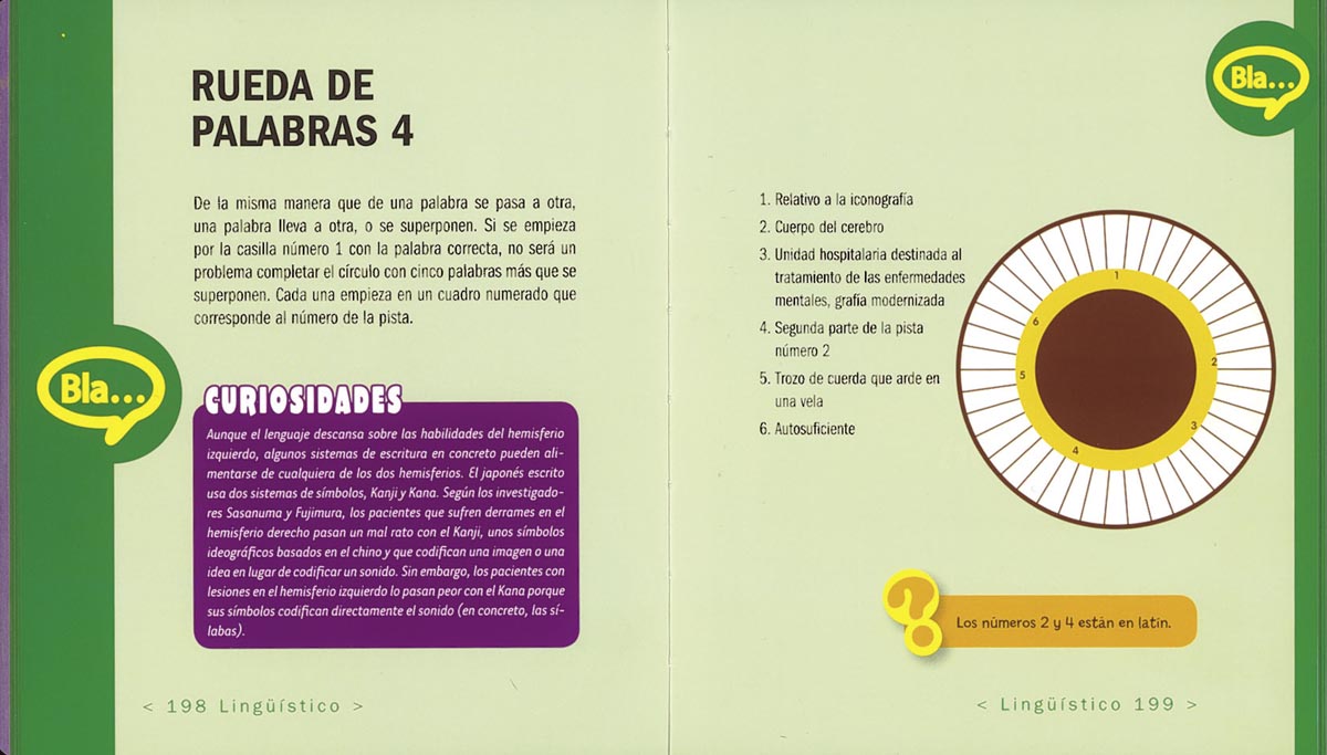 El entrenamiento cerebral es muy beneficioso y gratificante. En este libro presentamos ejercicios de todos los niveles para desarrollar habilidades mentales específicas: razonamiento deductivo, visualización de formas, manejo de símbolos, cálculo matemático, expresión verbal y lógica gramatical. Pistas incluidas en algunos ejercicios. ¡Soluciones al final del libro!