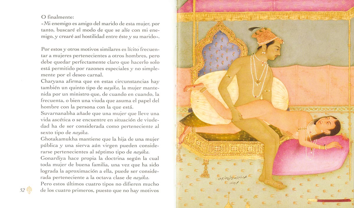 El Kamasutra no es un texto pornográfico que propone posturas sexuales acrobáticas e ingeniosas, sino una obra clásica atemporal que constituye el primer texto literario sobre el disfrute sexual. Además de un manual que reafirma la importancia de la sexualidad y la muestra como complementaria al bienestar moral, material y espiritual del ser humano, el Kamasutra es un canto a las relaciones entre hombres y mujeres de todo el mundo.