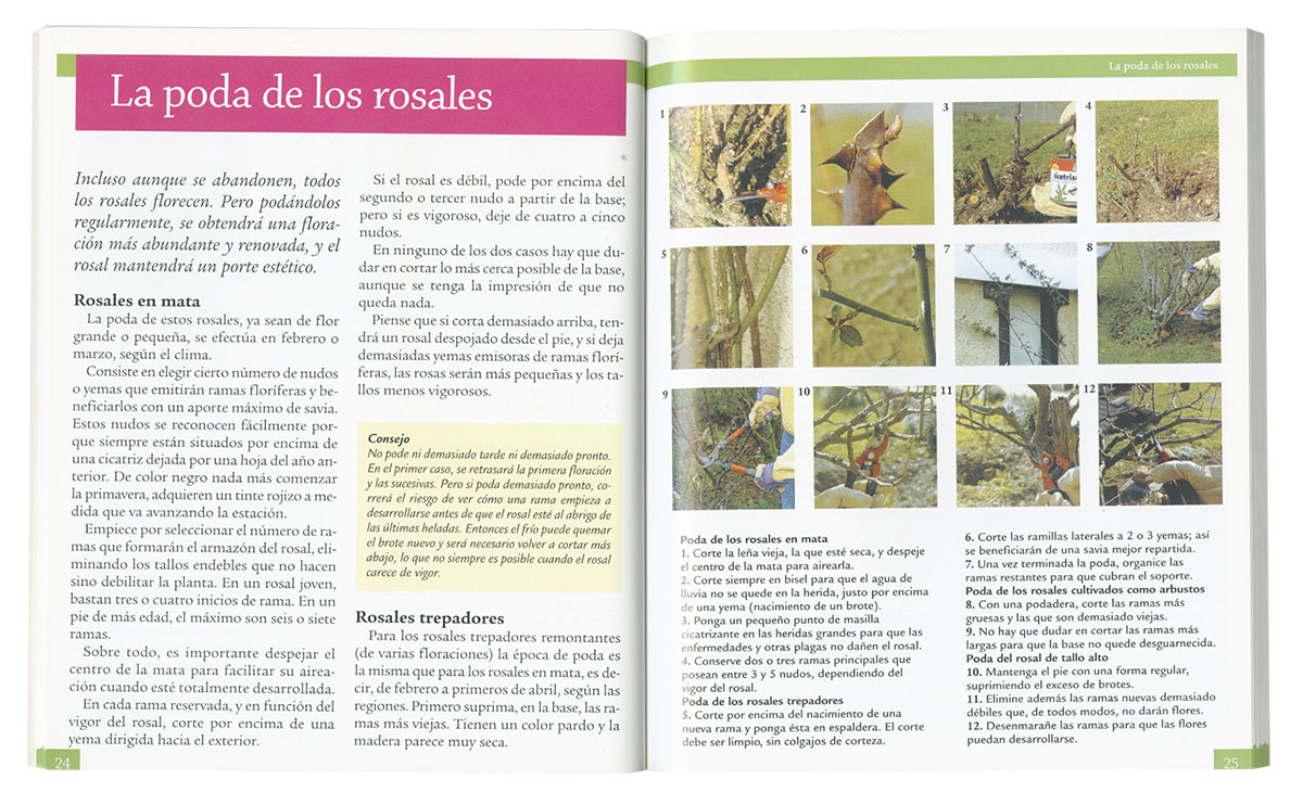 En esta guía práctica se ofrecen consejos para plantar, podar y multiplicar los rosales, así como información sobre sus enfermedades y plagas, que le permitirá reconocerlas y atajarlas. Se describen unas cien variedades de rosas y rosales, divididos en categorías de olor, para cortar, rosales arbustivos, miniaturas, llorones... todos fotografiados para elegir los que mejor respondan a sus necesidades y sus gustos.
