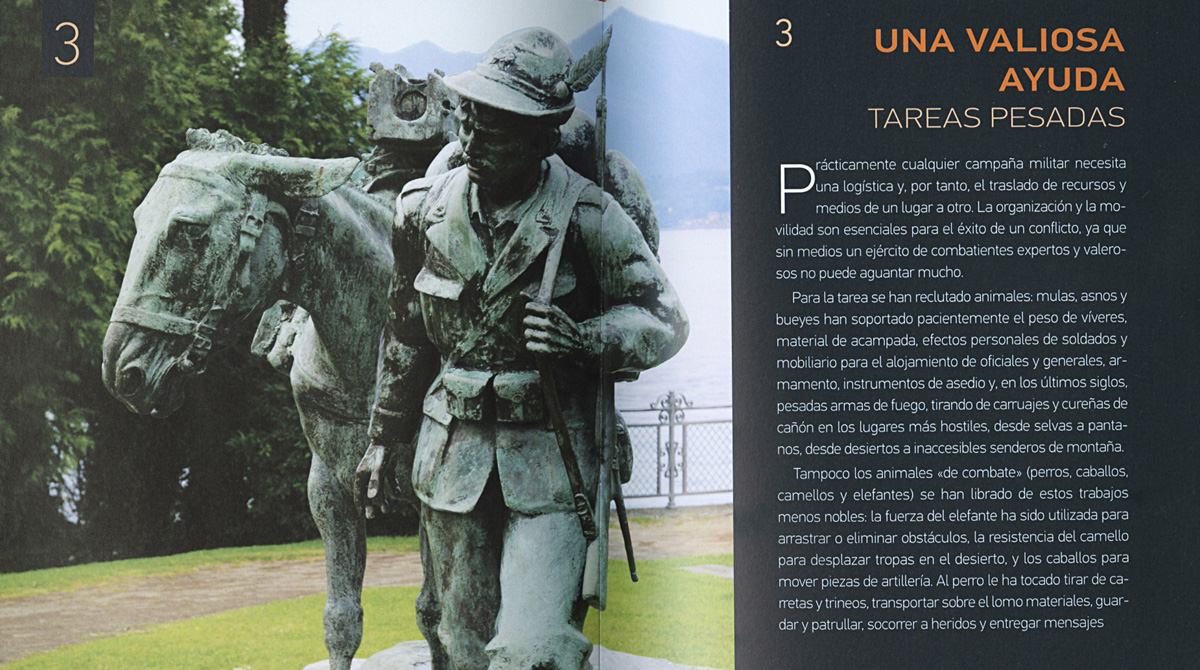 Caballos, elefantes, camellos, además de gatos, perros, delfines y palomas han sido empleados en los campos de batalla. A todos estos seres no responsables, grandes y pequeños, está dedicado este libro, que narra su entrega y coraje a la hora de llevar adelante una misión que no eligieron, pero que desempeñaron sin desobedecer las órdenes, incluso a costa del extremo sacrificio.