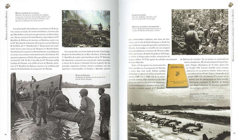 Aunque el Cuerpo de Marines fue el más pequeño de los que participaron en la II Guerra Mundial dentro del ejército de Estados Unidos, es muy notable su contribución a la victoria final: constituyendo únicamente el 5% de los 16,3 millones de hombres y mujeres que llegaron a servir a lo largo de la guerra, sufrieron el 10% de las bajas totales. En este libro se describe de forma documentada y amena la trayectoria de este cuerpo, desde su creación hasta el final del conflicto mundial, incluyendo hazañas míticas como Peleliu, Iwo Jima u Okinawa.