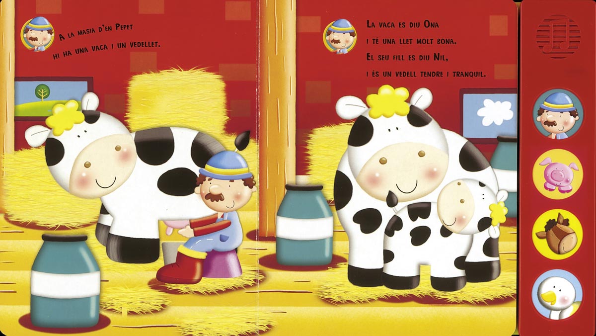La masia d'en Pepet és la més gran de la comarca. Passa-t'ho molt bé llegint les divertides rimes i escoltant la simpàtica cançó i els sons dels animals de l'interior.