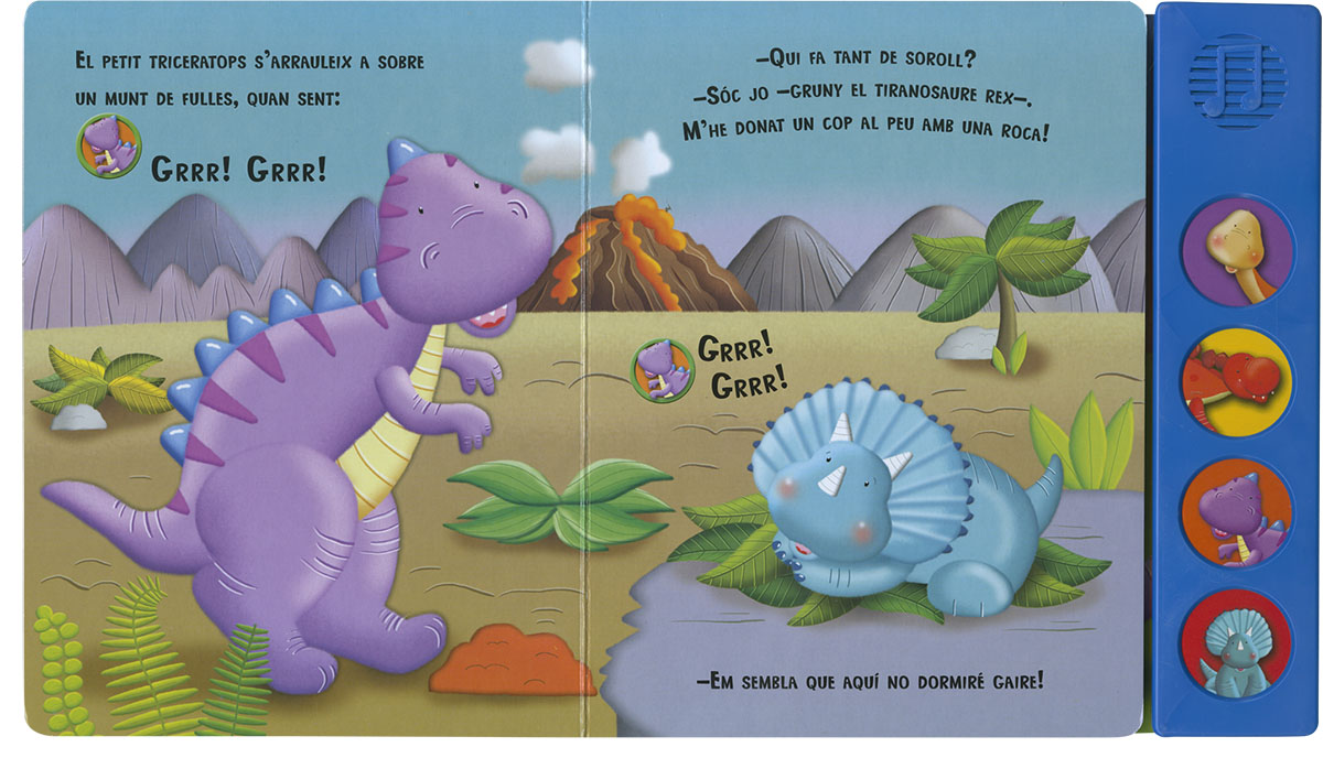 Enquadernació:  Llibre de cartró plastificat i encunyat amb estampacions i 4 botons sonors